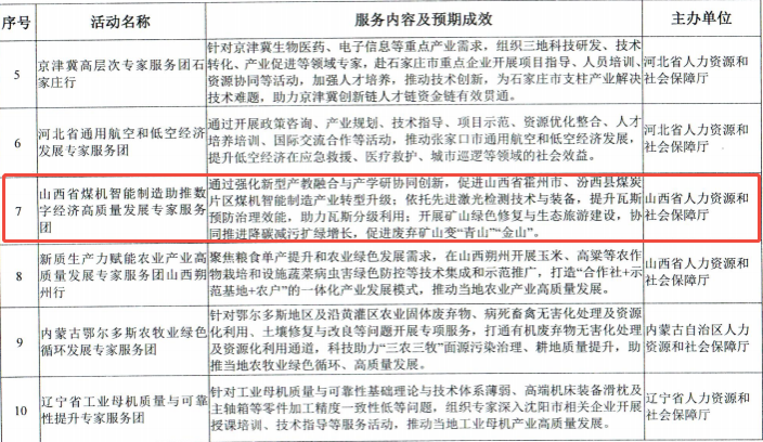 近日,beat365官网申报的“山西省煤机智能制造助推数字经济高质量发展专家服务团”项目成功入选国家人力资源和社会保障部2025年专家人才服务基层活动。
