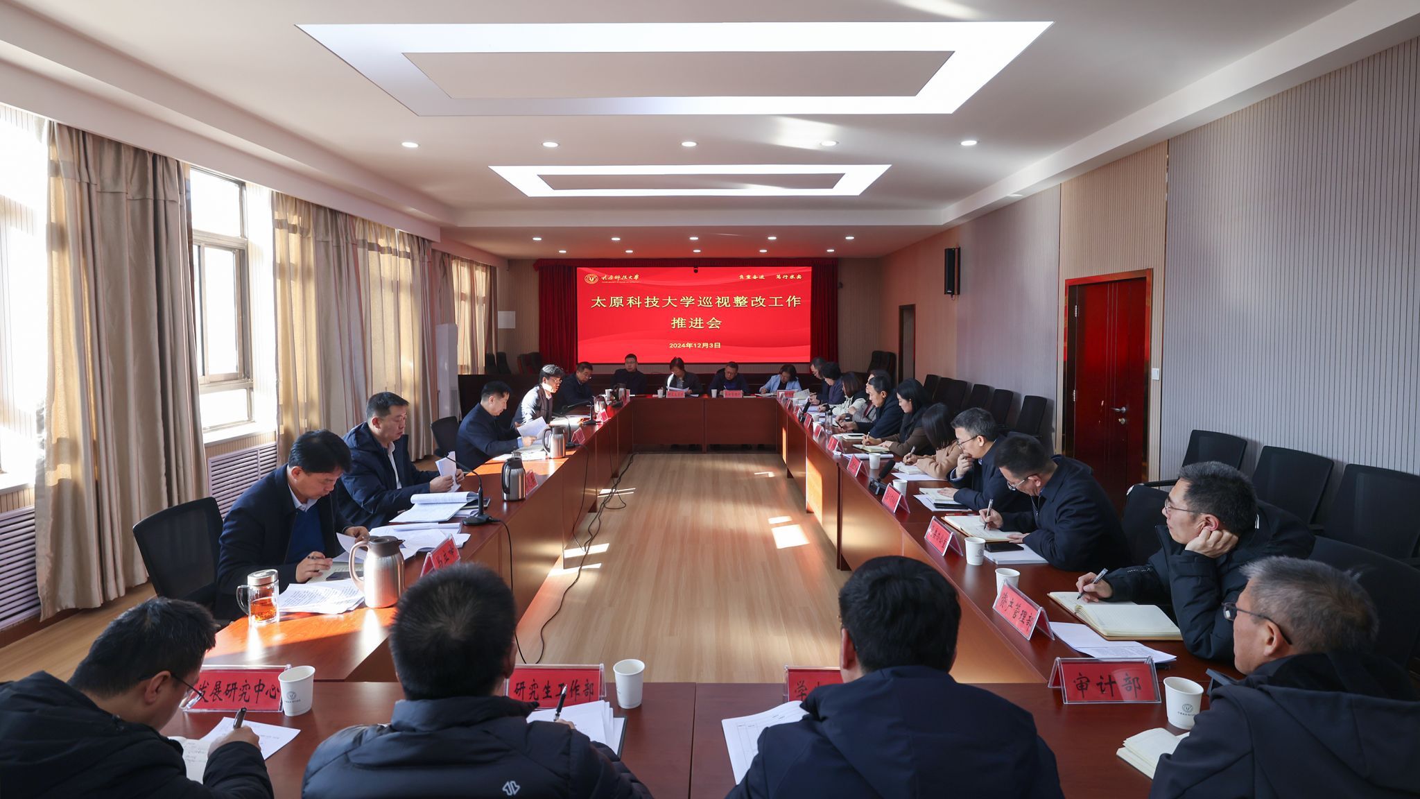 12月3日,beat365官网在主楼四层召开巡视整改工作推进会。全体校领导、巡视整改工作领导小组及办公室成员、整改责任单位负责人参加会议。校党委书记白培康主持会议并讲话。