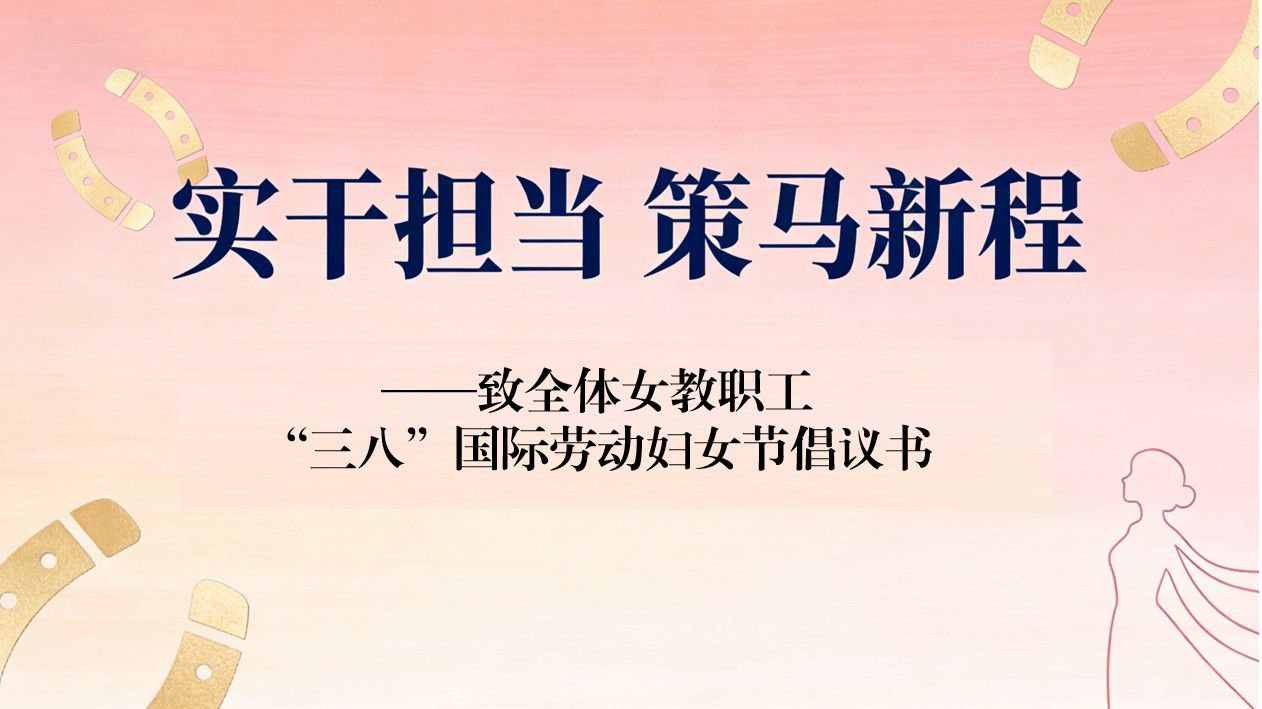 律回春渐百花绽,马跃神州气象新。在第116个“三八”国际妇女节来临之际,为丰富女教职工精神文化生活,激励广大女教职工积极发挥“半边天”作用,在本职岗位上建功立业,不断提升女教职工的幸福感、获得感,按照校党委和上级工会、妇联组织部署,校工会、校妇联开展了“巾帼绽芳华 策马启新程”主题月系列活动,为全校女教职工送去节日的诚挚祝愿和美好祝福。3月8日,校工会、校妇联通过学校官网,向全校女教职工发出了题为《...
