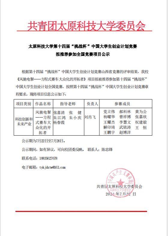 beat365正版唯一官网必一第十四届“挑战杯”中国大学生创业计划竞赛拟推荐参加全国竞赛项目公示