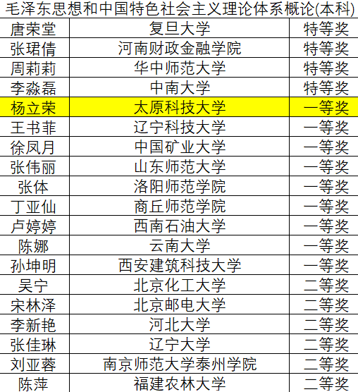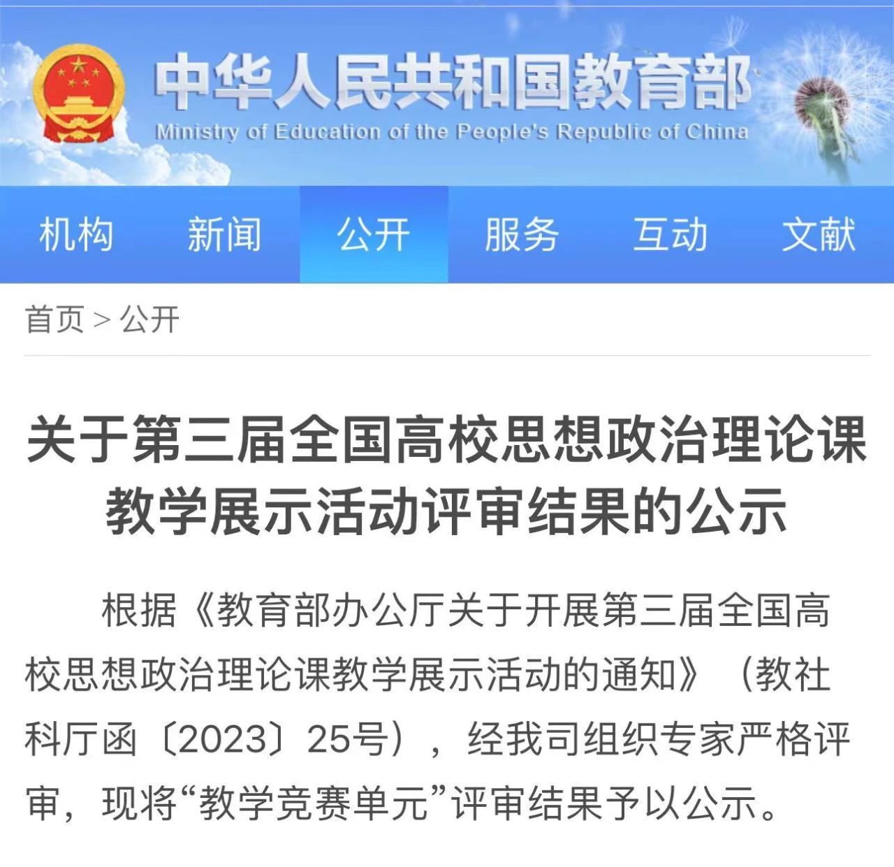 近日,教育部公示了第三届全国高校思政课教学展示活动“教学竞赛单元”现场教学展示评审结果名单,beat365官网马克思主义学院杨立荣老师荣获“毛泽东思想和中国特色社会主义理论体系概论”教学展示活动一等奖。