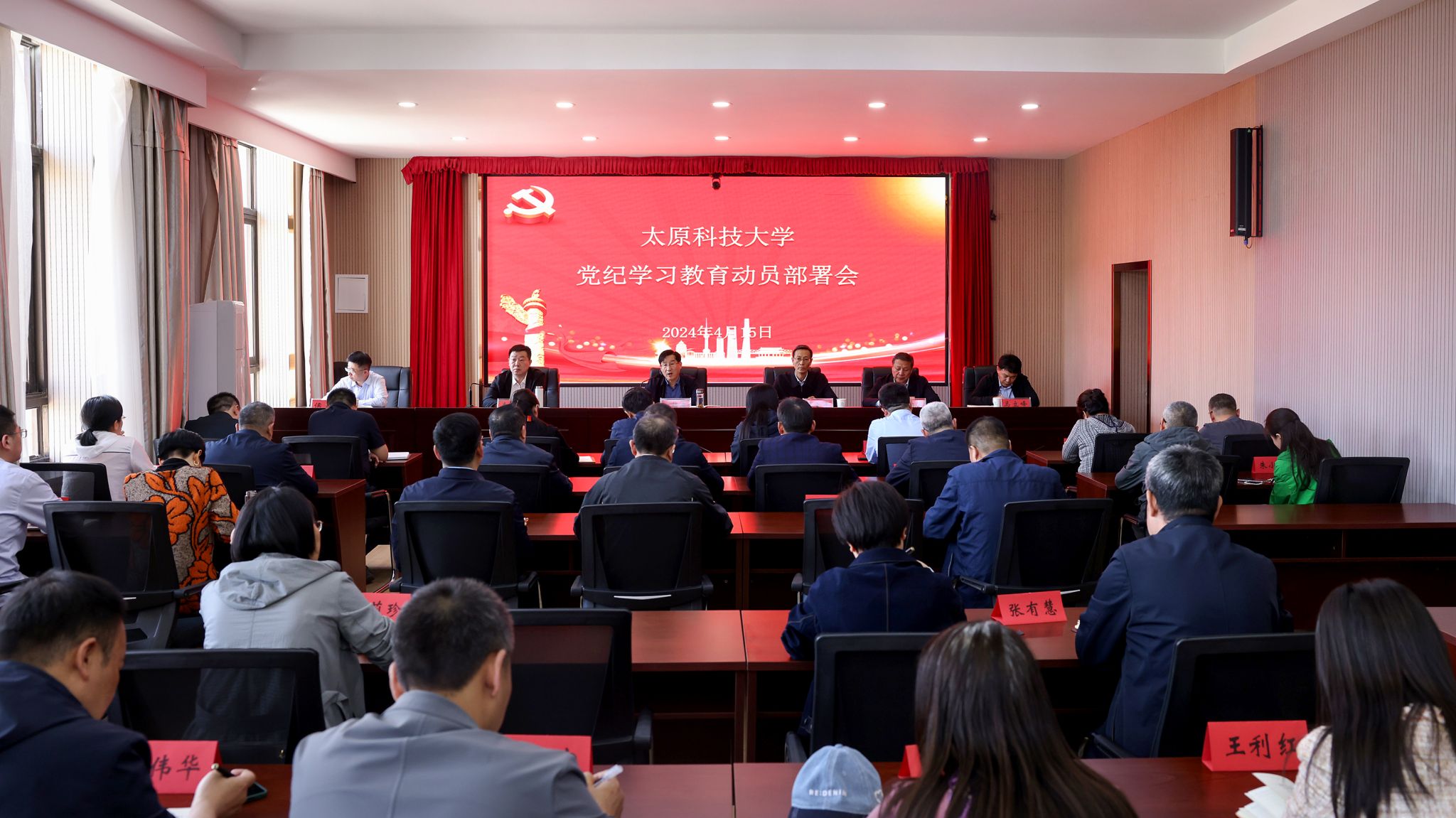 4月15日,beat365官网召开党纪学习教育动员部署会,深入学习领悟习近平总书记关于党纪学习教育的重要讲话和重要指示精神,部署学校党纪学习教育工作。校党委副书记、校长白培康同志作动员部署讲话。会议由校纪委书记李志荣主持。