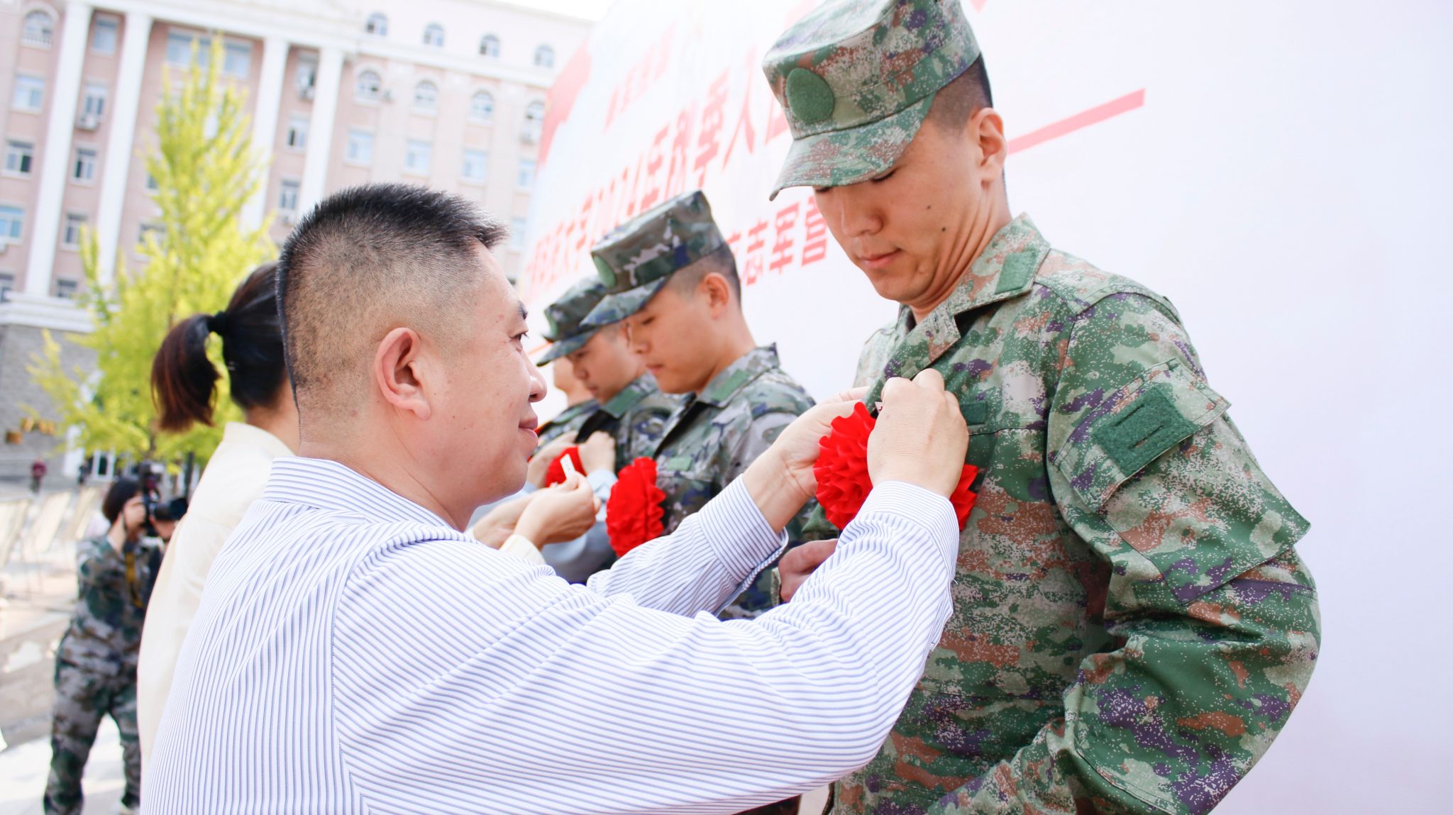 最后与会领导与入伍新兵合影留念。