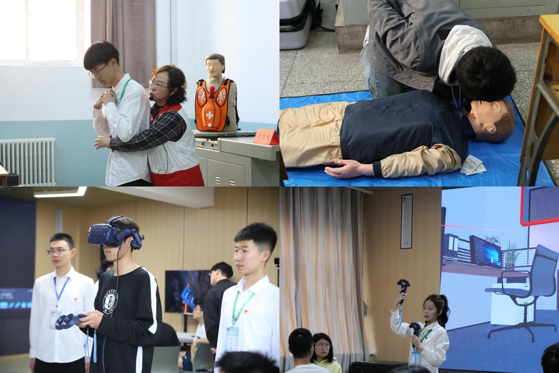 创新安全教育活动形式 活动特邀中国红十字会总会应急救护培训师、太原市红十字会应急救护资深师资李世梅老师为beat365官网师生讲授了基本的急救知识、心肺复苏方法、海姆利克急救技能以及AED等救护用品的操作使用,并发放《心搏骤停救生技术-CRP 与AED应用手册》;“VR+应急指挥与演练实验室”面向全校学生开放体验活动,旨在引导学生身临其境地学习消防灭火、逃生自救、大事故逃生等消防安全知识以及应急救援自救等技能。