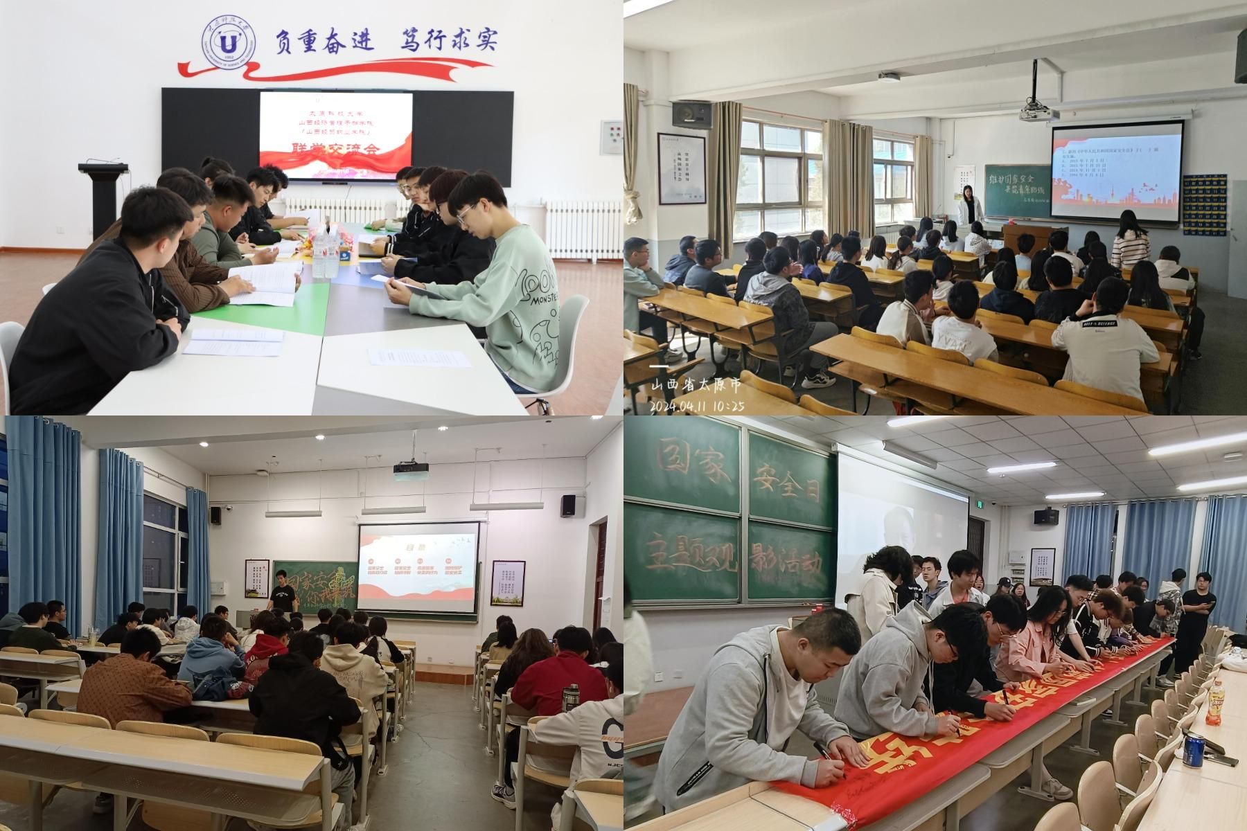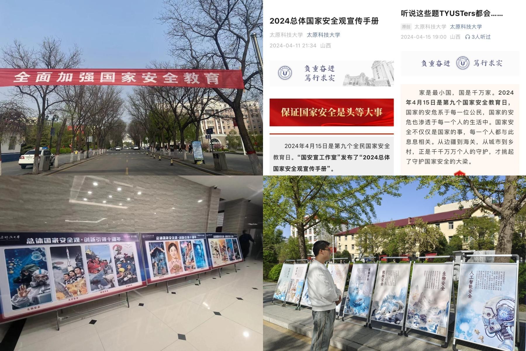 营造共筑国家安全防线的浓厚氛围 学校充分利用校园网、公众号、企业微信、微博等线上平台,宣传国家安全有关知识,在学校主干道悬挂宣传横幅,在东、西校区设立专题海报展览,进一步强化宣传氛围;组织开展了“强化国家安全意识,筑牢国家安全防线”国家安全教育主题征文大赛、“山西焦煤杯”总体国家安全观主题海报设计大赛等丰富活动,进一步推动了总体国家安全观深入人心、落地生根。