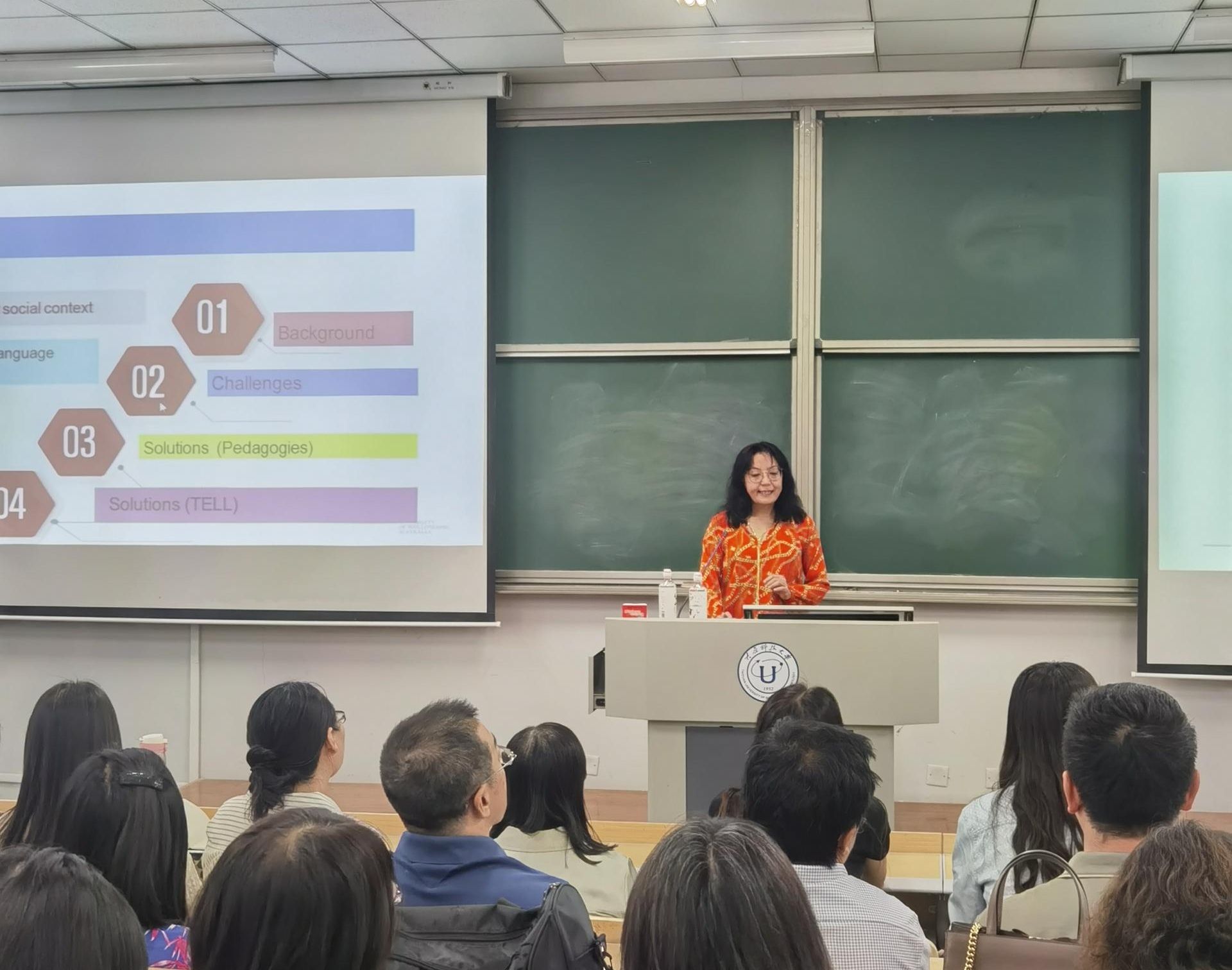 2024年5月29日下午,外国语学院特聘教授、澳大利亚伍伦贡大学文学社会科学与人文学院高小平老师在西校区阶梯教室XGD-J105应邀为beat365官网师生开展了精彩的学术讲座,讲座题目为LANGUAGE EDUCATION IN AUSTRALIA: LANDSCAPE, CHALLENGES AND SOLUTIONS。讲座由外国语学院院长董艳教授主持,200余名师生到场聆听。这场讲座介绍了澳大利亚的历史和语言政策,尤其是包括中文在内的14种优先语言,分析澳大利亚语言教育的发展现状及其面临的挑战,并探讨如何运用创新教学理念和技术辅助解决这些问题。