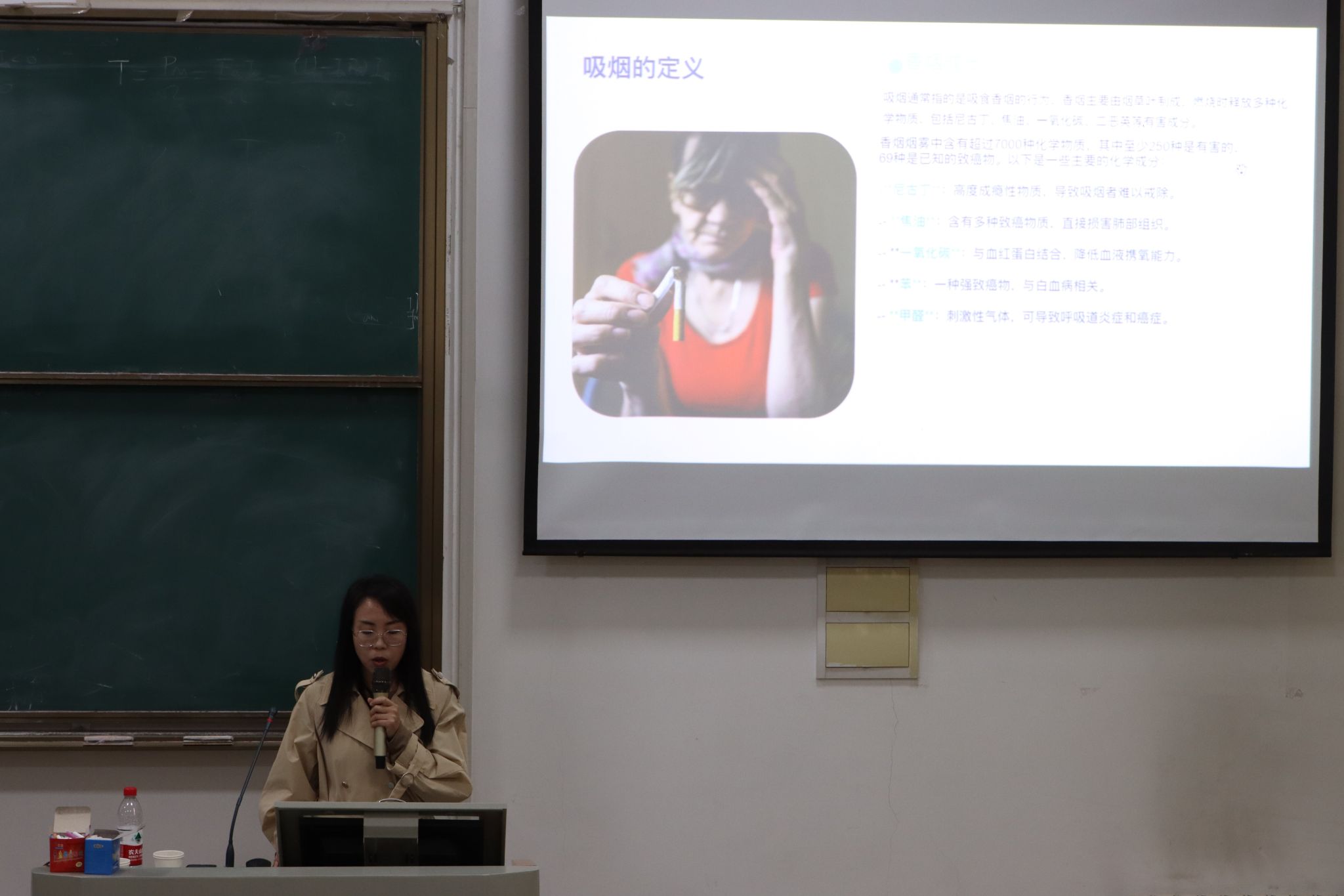 为全面提高beat365官网师生对吸烟危害的认识,引导学生树立主动拒烟观念,推动无烟校园建设。3月26日下午,以“守护健康拒绝烟草”为主题的讲座在beat365官网综合楼八阶教室成功举办。校团委特邀太原市社会福利精神康宁医院赵婷担任主讲人,本次活动吸引二百余名师生参与,现场气氛热烈,反响积极。