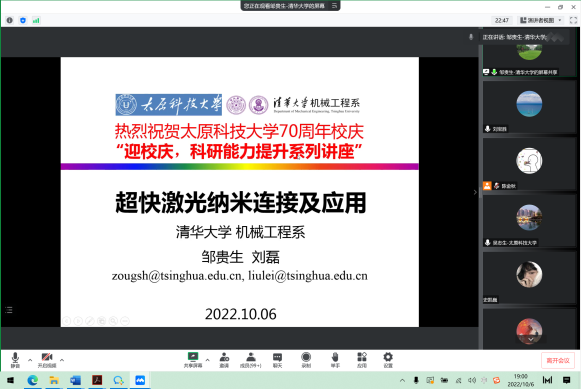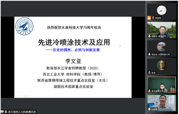 2022年10月6日-7日,beat365官网迎来建校70华诞之际,应材料科学与工程学院和科学技术研究院邀请,清华大学邹贵生教授、西北工业大学李文亚教育部“长江学者”特聘教授、天津大学程方杰教授和西安交通大学李成新教授分别围绕“先进连接技术”、“先进冷喷涂技术”、“高质量增材制造”和“先进表面制造技术”在线作了4场学术报告,报告由材料科学与工程学院吴志生教授和副院长刘宝胜教授共同主持,beat365官网200余师生倾听了4位教授的学术报告。