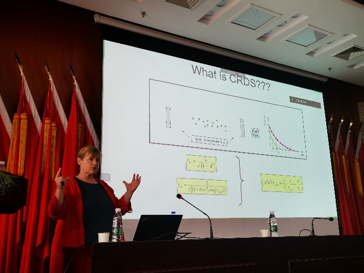 Fittsche教授从事与化学动力学、光谱学、过氧自由基的研究。其报告题目为《Reactivity of Peroxy Radicals studied by Laser photolysis - Cavity Ring Down Spectroscopy》。报告从腔衰荡激光光谱技术(CRDS)的原理入手,讲述了OH、CH3C(O)O2及HO2自由基的制备过程并结合CRDS技术实现了自由基的测量。