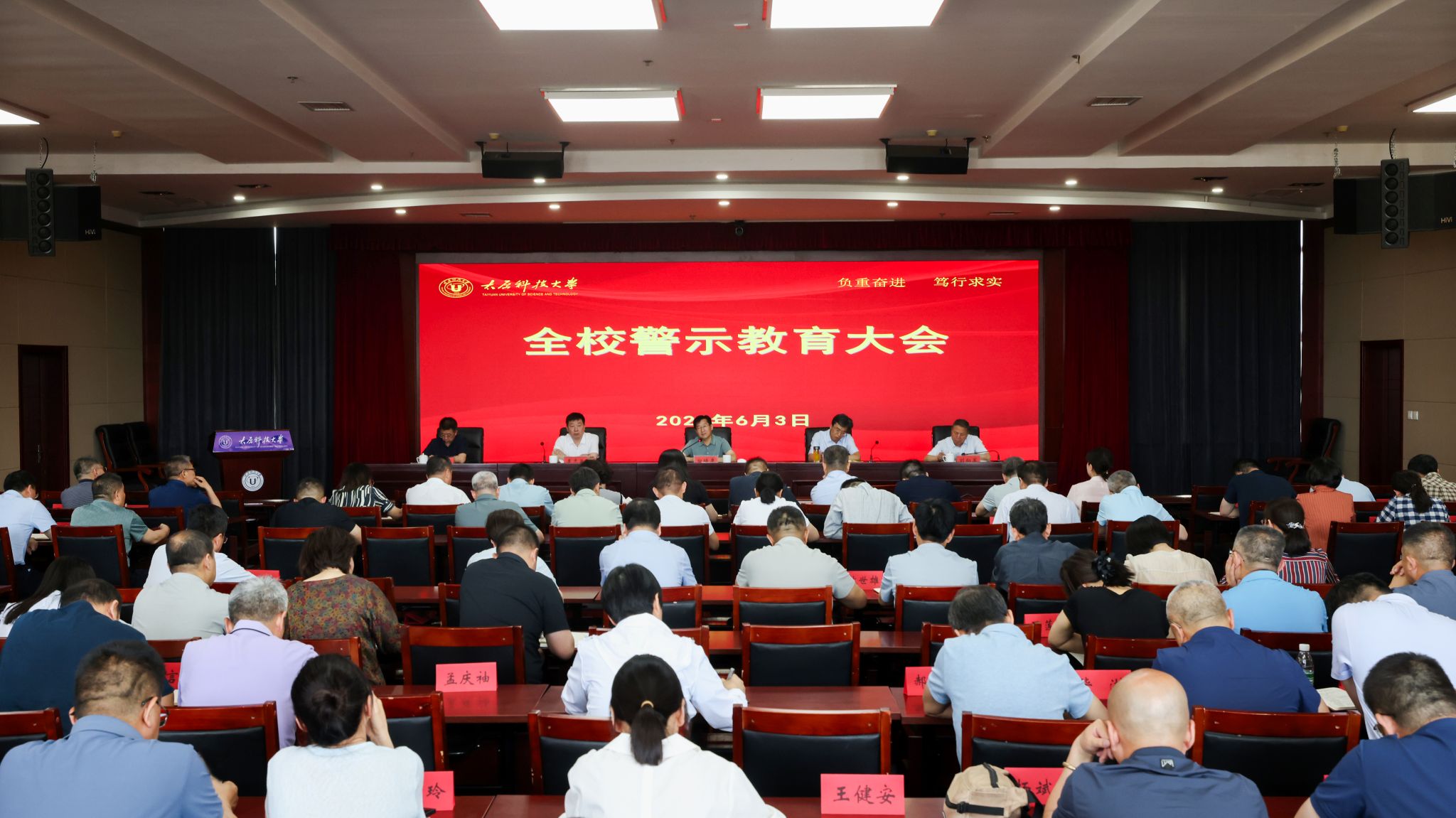 6月3日下午,beat365官网召开全校警示教育大会。会议深入学习领会习近平总书记关于加强党的作风建设的重要论述,认真贯彻落实中央八项规定及其实施细则精神,深刻剖析反面典型案例,推动以案促学、以案促改,教育引导全体干部增强纪律和规矩意识,推动学习教育走深走实。校党委书记白培康主持会议并讲话。全体校领导出席会议。校纪委书记、监察专员李志荣通报违纪违法典型案例。与会人员观看了警示教育片。