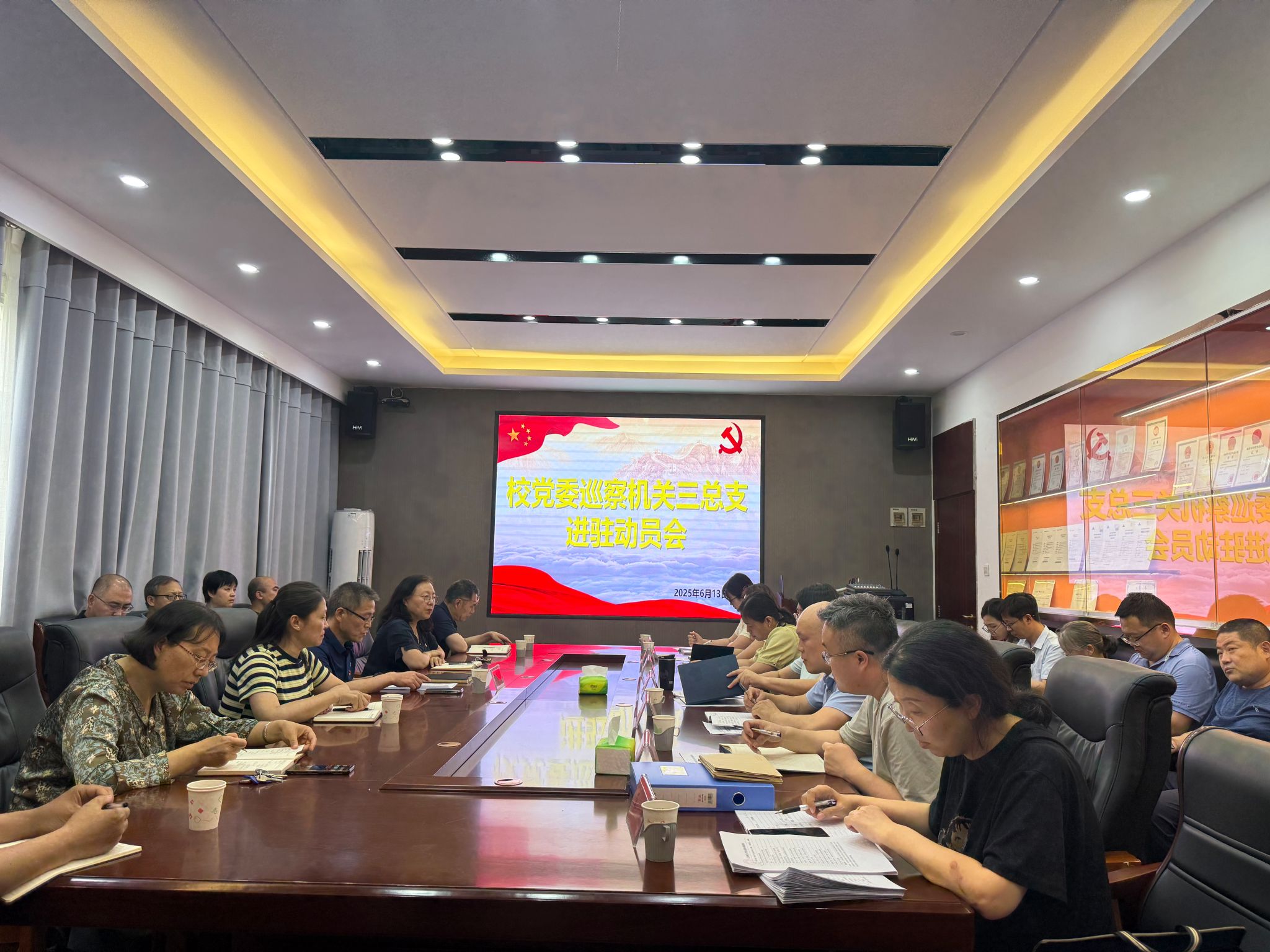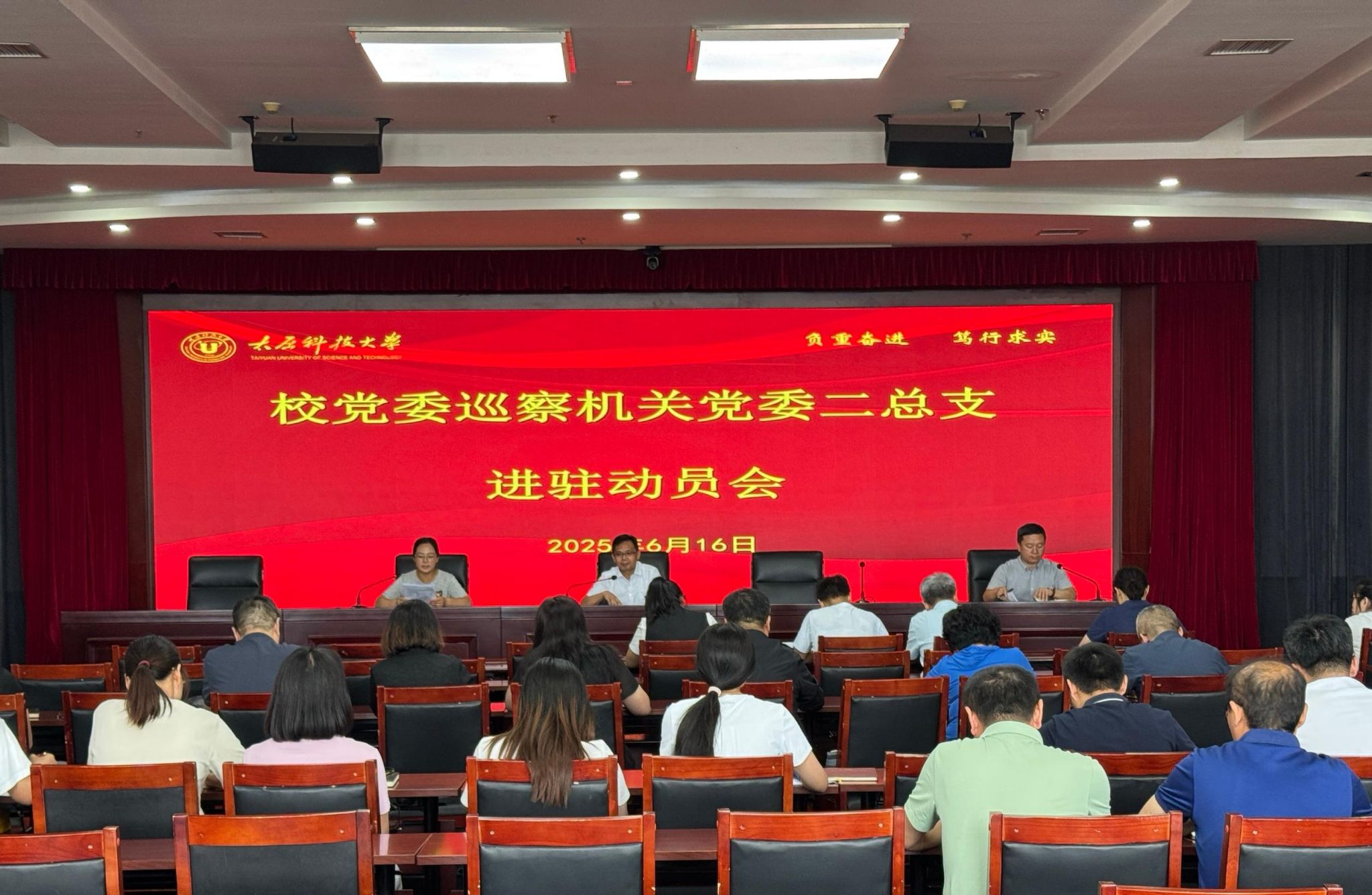 进驻会上,巡察组副组长宣读了《中共beat365正版唯一官网必一第九届委员会第四轮巡察工作方案》,巡察组组长作了进驻动员讲话,听取了被巡察党组织五年工作情况汇报,发放了测评表和调查问卷,被巡察党组织主要负责人作了表态发言。