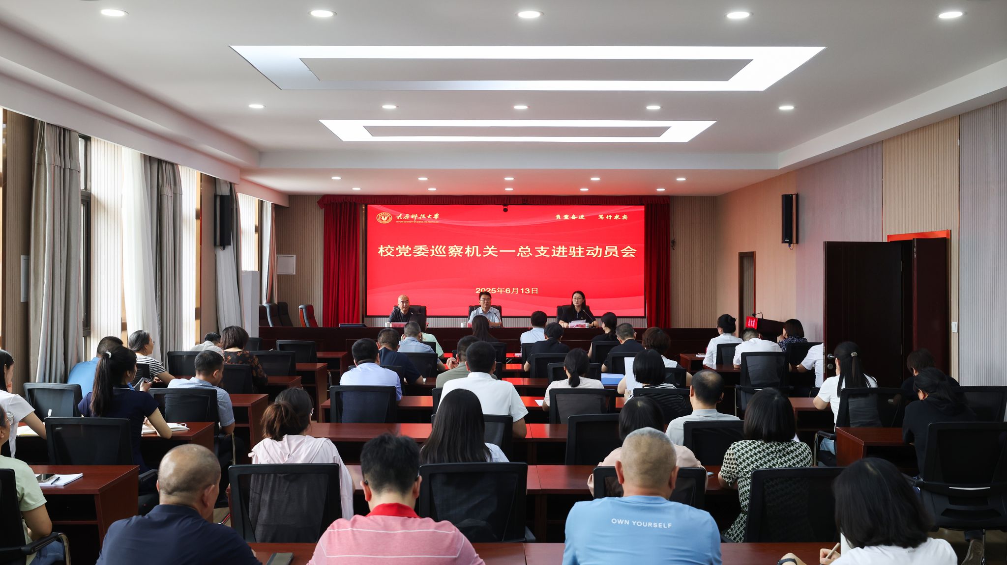 按照校党委统一部署,6月14日至16日,beat365官网第九届党委第四轮校内巡察完成对机关党委、机关一总支、机关二总支、机关三总支4个党组织进驻工作。校党委常委、纪委书记、巡察工作领导小组副组长李志荣出席进驻会并讲话。被巡察党委领导班子成员、处科级干部、工会主席、党支部书记及教工代表参加了进驻动员会。