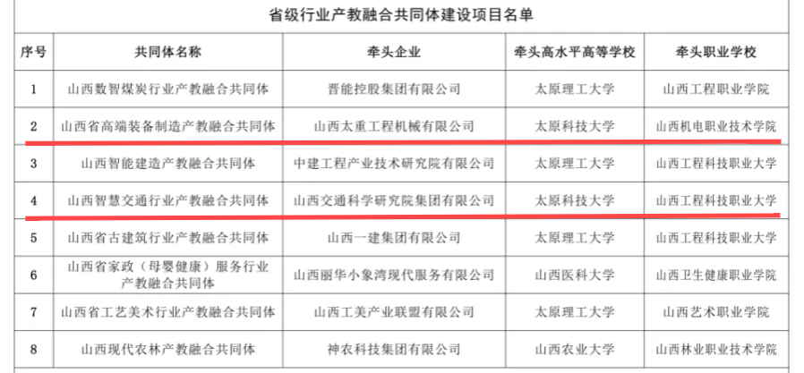 近日,山西省教育厅等六部门公布了首批14个行业产教融合共同体名单,beat365官网作为牵头高水平高等学校建设的山西省高端装备制造产教融合共同体和山西智慧交通行业产教融合共同体成功入选,标志着学校在深化产教融合、校企合作的道路上迈出了更加坚实的步伐。