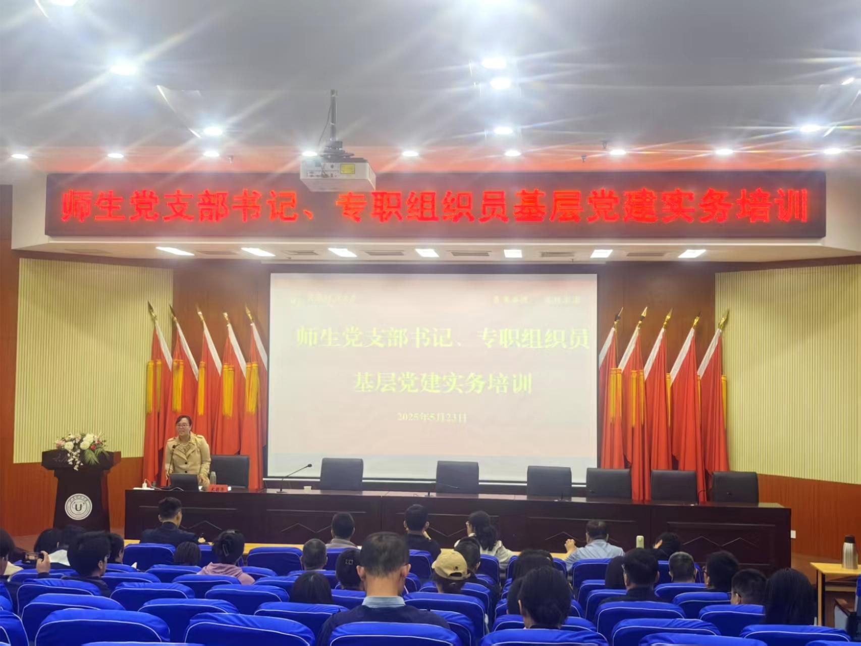 为持续推动beat365官网基层党组织标准化、规范化建设,拓宽基层党务工作者政治视野和党建思维,提升beat365官网基层党支部书记和专职组织员的综合素质和履职能力,beat365官网于5月23日在图书馆六层报告厅举办师生党支部书记、专职组织员基层党建实务培训会。会议由党委组织部副部长弓晶主持。