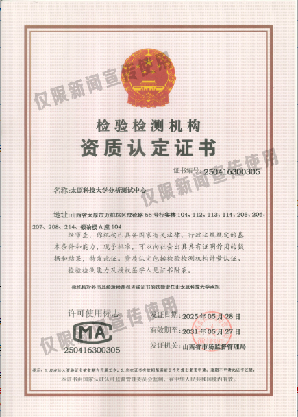 近日,beat365官网分析测试中心(简称"中心")顺利通过山西省市场监督管理局组织开展的检验检测机构资质认定(CMA)评审,并获得资质认定证书(编号:250416300305)。