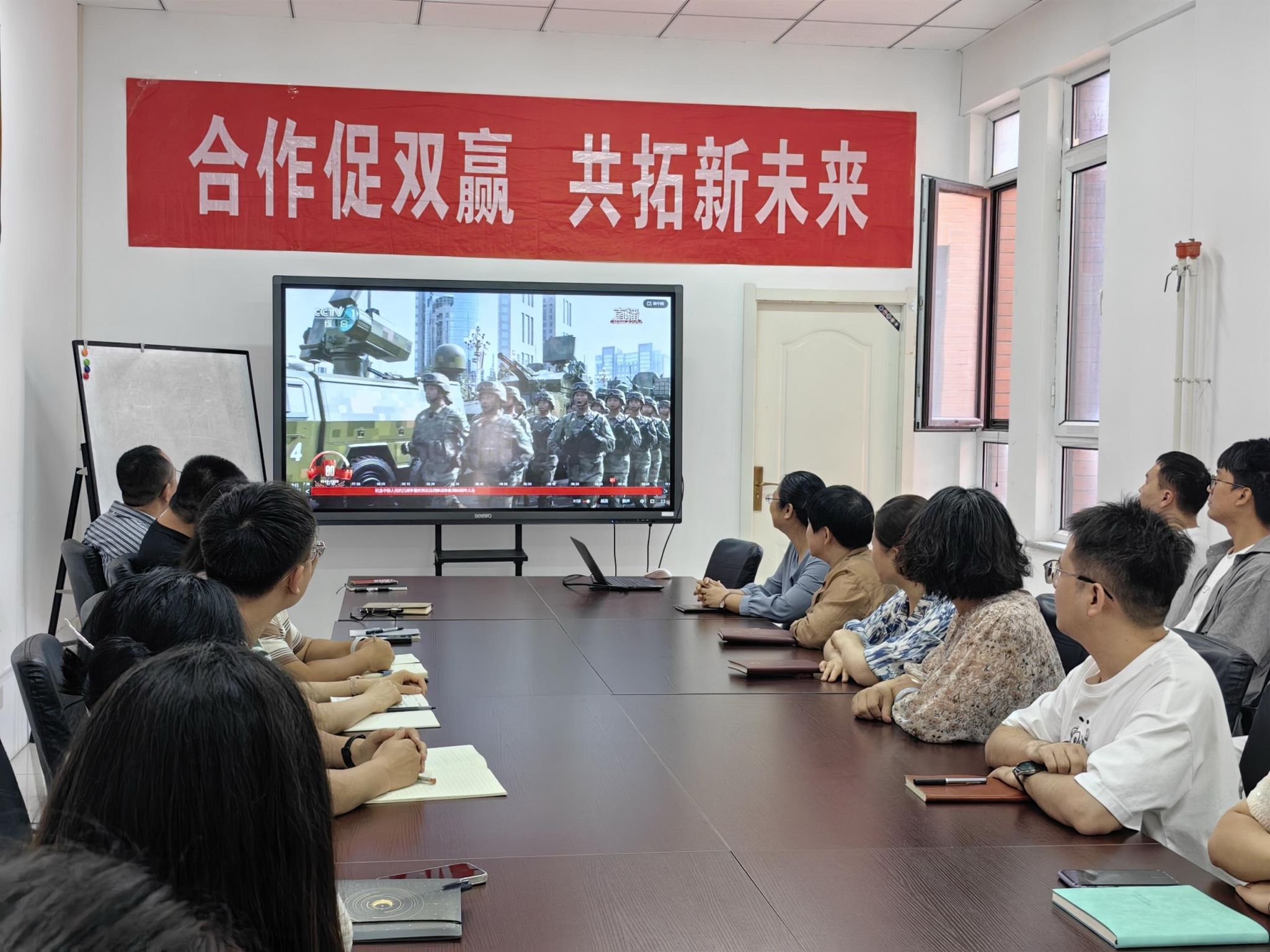 为更好地推进学院党委教工支部与学生支部之间实现党建引领、优势互补、同题共答、同向同行,不断增强党组织活力和创造力,提升党的建设质效,经济与管理学院党委以九三阅兵为契机,9月3日上午组织学院教工第一党支部与本科生第一党支部、教工第三党支部与研究生第一党支部开展党组织共联共建活动,集体观看了纪念中国人民抗日战争暨世界反法西斯战争胜利80周年大会直播,共过组织生活。