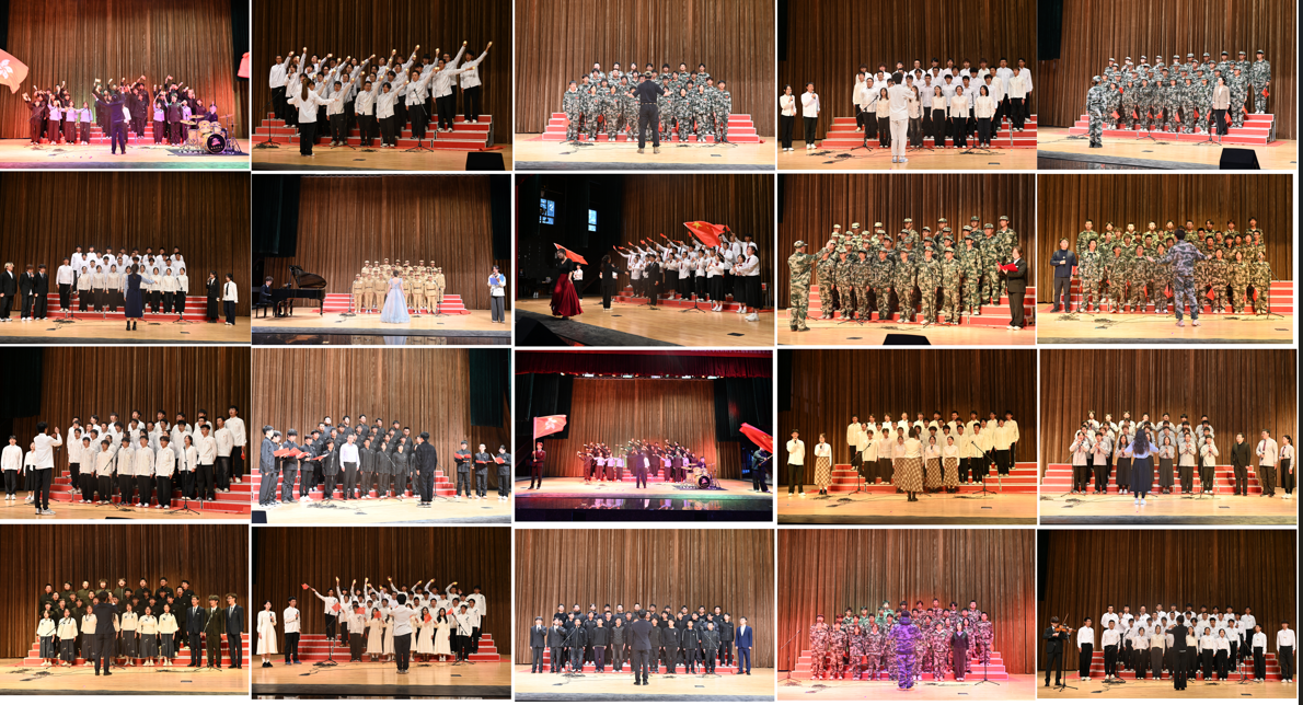 比赛现场,气氛热烈而庄重,各参赛班级精神饱满、服装整齐,以昂扬的姿态依次登场。一首首经典歌曲接连唱响,同学们用嘹亮的歌声和富有创意的编排,将对祖国的热爱融入每一句歌词、每一段旋律,精彩的表演赢得了现场阵阵掌声。