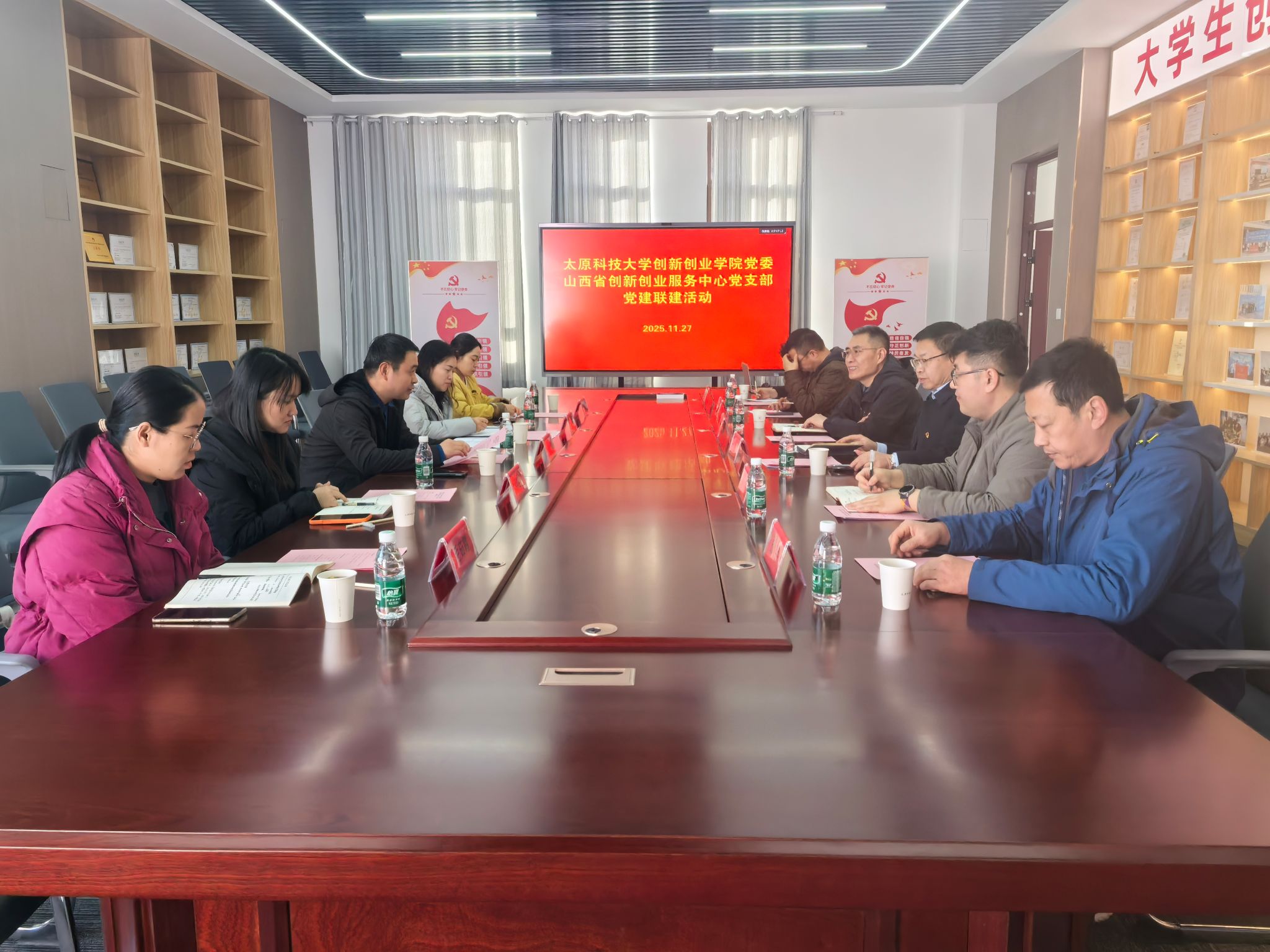 为深入贯彻落实新时代党的建设总要求,推动党建与业务深度融合,以高质量党建引领高质量发展,11月27日,beat365官网创新创业学院党委与山西省创新创业服务中心党支部召开座谈会并签署党建联建协议。双方将围绕党建共建、人才培养、成果转化、文化交流等重点领域深化合作,着力构建“党建引领、业务协同、融合发展”的校企合作新格局。会议由创新创业学院党委书记李志宏主持。