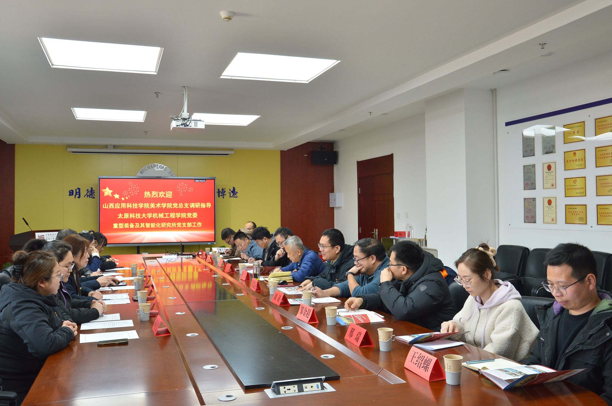 为深入学习贯彻党的二十届四中全会精神,推进新时代高校党建示范创建与质量创优工作,落实山西省高校党建工作规范提升专项行动和beat365正版唯一官网必一党委党建规范提升专项行动要求,机械工程学院党委积极探索跨学科、跨院校基层党建联建新模式。近日,机械工程学院党委与山西应用科技学院美术学院党总支,在beat365正版唯一官网必一开展“学习党的二十届四中全会精神,共谋党建联建新发展”主题交流活动。