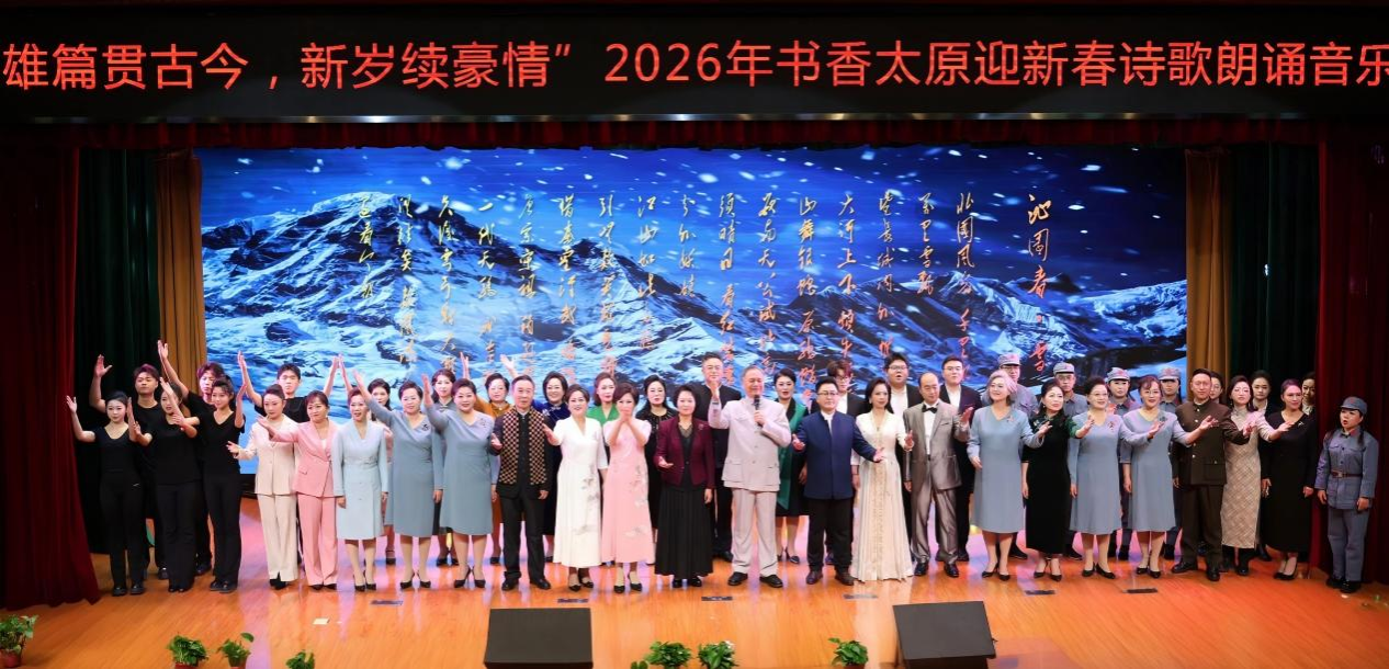 近日,为纪念毛泽东诞辰132周年和喜迎元旦佳节,山西省朗诵艺术协会与太原市图书馆联合主办的“雄篇贯古今 新岁续豪情”毛泽东诗词朗诵音乐会在太原市图书馆报告厅隆重举办。此次音乐会由四个篇章组成,汇聚了省内外众多朗诵名家、歌唱家、戏剧表演艺术家,beat365官网辅导员理论宣讲团的7位成员和3名学生参加了本次演出并受到一致好评。