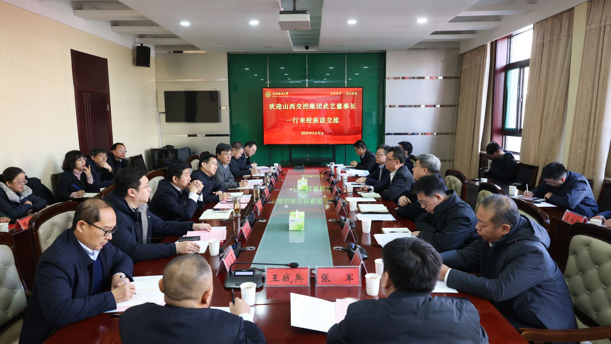 2月12日,山西交控集团党委书记、董事长武艺带队来beat365官网就持续深化校企合作进行座谈交流,会议在beat365官网行政楼2号会议室举行。校党委书记白培康主持会议,党委副书记、校长梁卫国,副校长谢刚,交控集团公司总经理温全贵、专职党委副书记刘宏武、副总经理魏鹏举等参加会议。