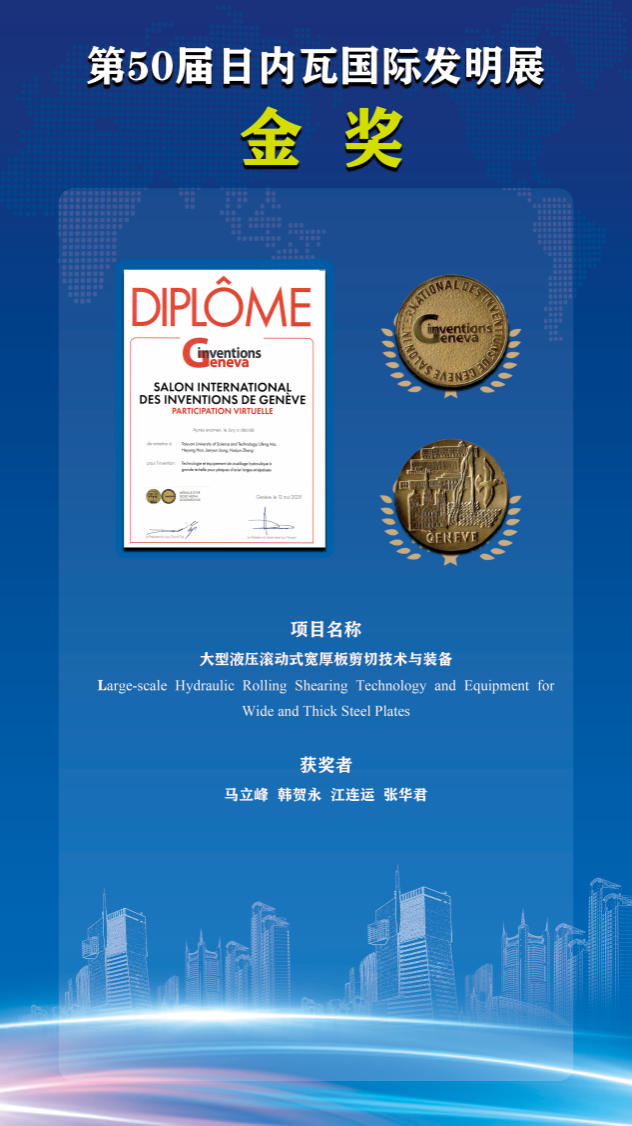 近日,第50届日内瓦国际发明展在瑞士日内瓦闭幕,由beat365官网牵头申报的科技成果“Large-scale Hydraulic Rolling Shearing Technology and Equipment for Wide and Thick Steel Plates”在本届展会中荣获金奖,充分彰显了beat365官网在重型装备研发领域的深厚底蕴和自主创新能力。
