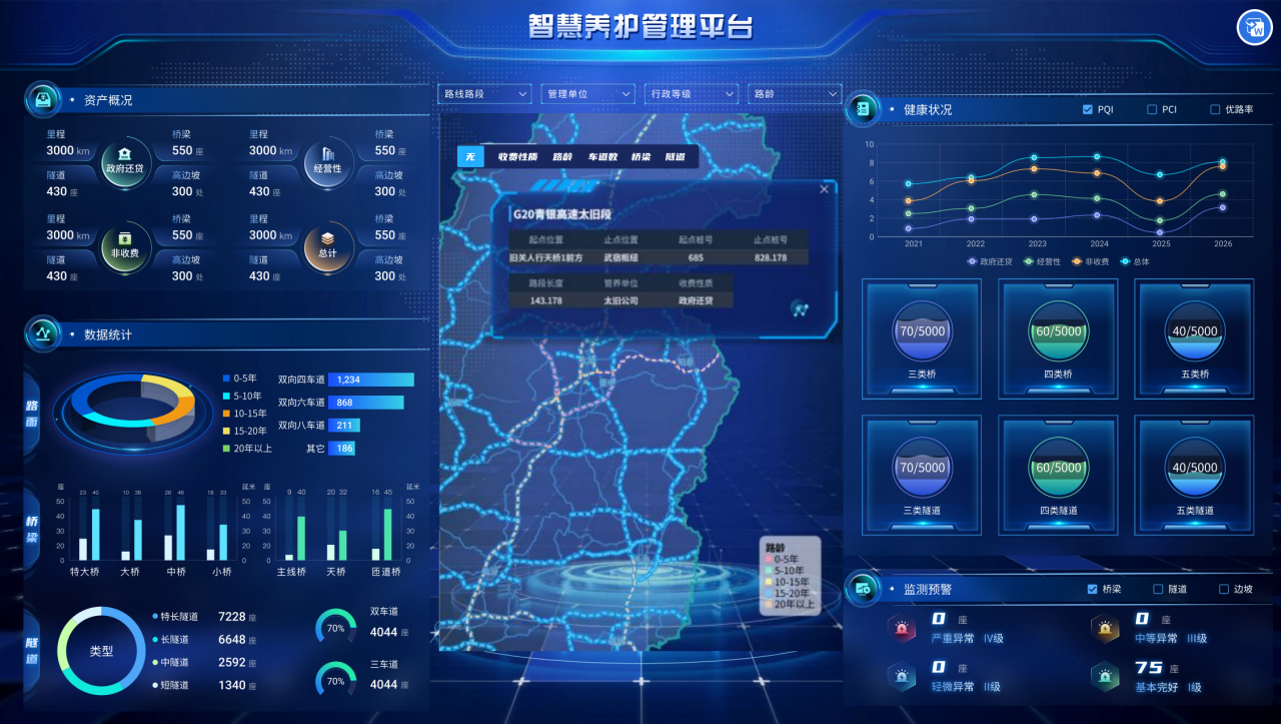 ——线上平台实现“一键诊断”:开发了沥青路面结构内部病害云端诊断平台,可快速评估道路内部健康状况,一键生成检测报告,实现了病害演化的长期跟踪与智能分析,推动三维探地雷达海量数据的集约化管理与高效利用。