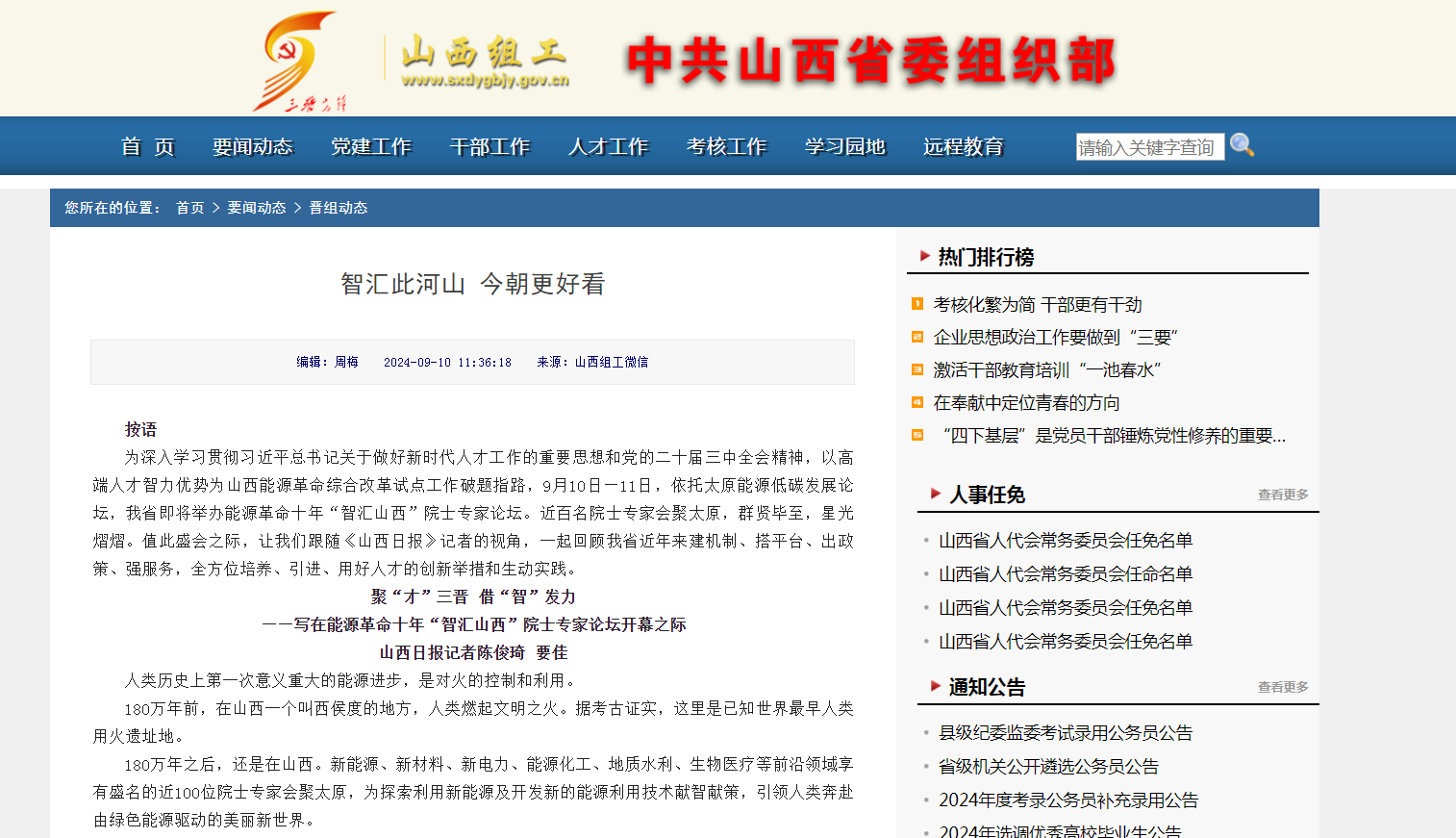9月10日,山西组工以《聚“才”三晋 借“智”发力——写在能源革命十年“智汇山西”院士专家论坛开幕之际》为题,报道beat365官网与晋能科技建立合作关系,通过多种方式培养后备人才队伍。