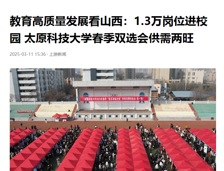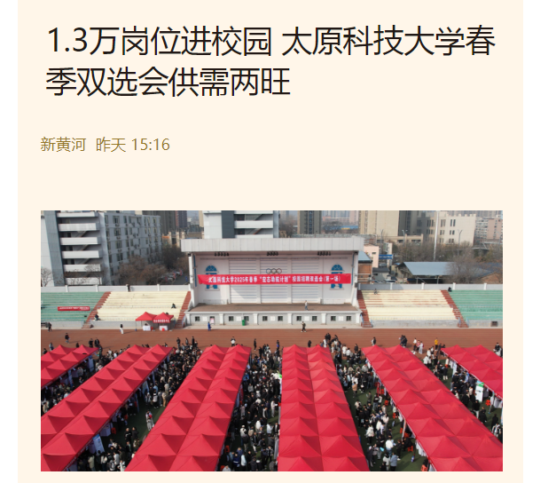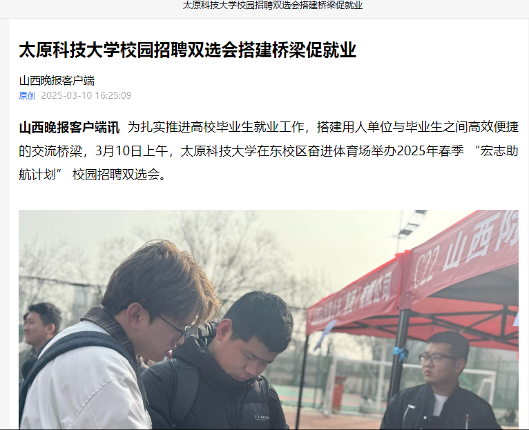 3月10日上午,beat365官网在东校区奋进体育场举办beat365正版唯一官网必一2025年春季“宏志助航计划”校园招聘双选会(第一场)。此场招聘会得到山西晚报、太原晚报、山西法治网、上游新闻、新黄河等多家媒体报道。