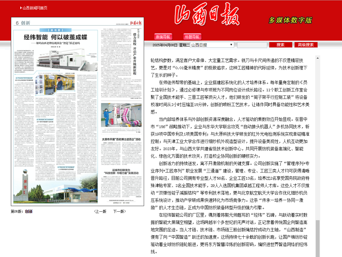 4月7、8日,山西日报连续报道beat365官网分别与太原北方重工合作研发生产成套管轧设备,与经纬智能纺织机械有限公司研发红外光电检测系统,扎实推进产学研合作,提升科技成果转化,助力地方企业高质量发展。