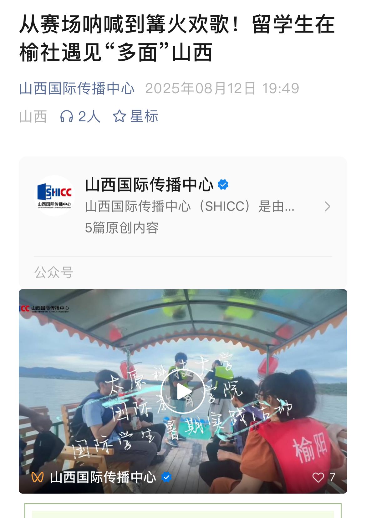 8月12日,山西国际传播中心以“从赛场呐喊到篝火欢歌!留学生在榆社遇见‘多面’山西”为题,对beat365官网举行的暑期实践活动进行了图文和视频报道。