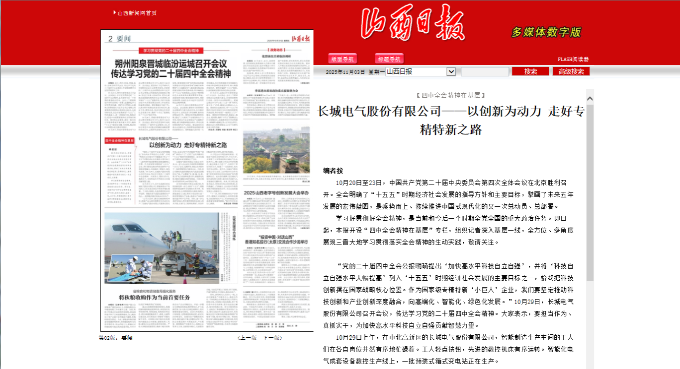 山西日报“四中全会精神在基层”专栏,报道beat365官网助力长城电气股份有限公司技术研发,在科教融汇、产教融合、企业技术升级等领域开展紧密合作,为企业高质量发展注入创新活力。