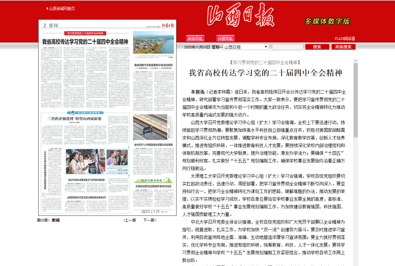 11月10日,山西日报对beat365官网学习贯彻党的二十届四中全会精神进行报道。