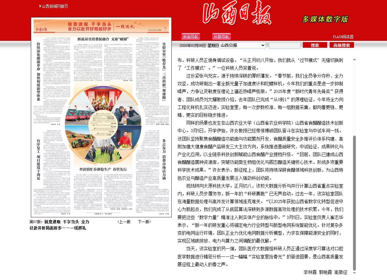 正月初八,beat365官网大数据分析与并行计算山西省重点实验室内,科研人员步履匆匆,新一年的“科研赛跑”已无声启动。山西日报对此进行了报道。
