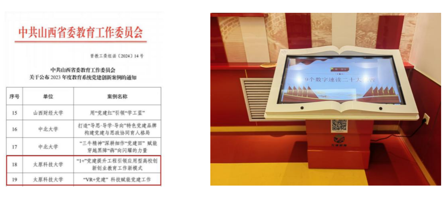 一、科技赋能,助力数字党建提“智”增效。学院始终保持融入新时代、适应新特点、满足新要求、汇聚新动力、开创新局面的前进方向,持续推动智慧党建工作室建设。2024年工作室引进体感翻书机,丰富党建教育形式,通过将数字化的书籍内容以立体的形式呈现在师生面前,可以自由地选择视角、缩放画面,甚至可以触摸到书中的文字和图片,让阅读变得更加生动有趣,摆脱传统纸质书籍的束缚,切实提高对党员教育培训的时代性、针对性、有效性。科技赋能助力学院打造出一个线上与线下相结合、虚拟与现实相融合、多终端、全覆盖的智慧空间,构建出一个具有新时代、新思政、新党建特征的智慧阵地和红色阵地。