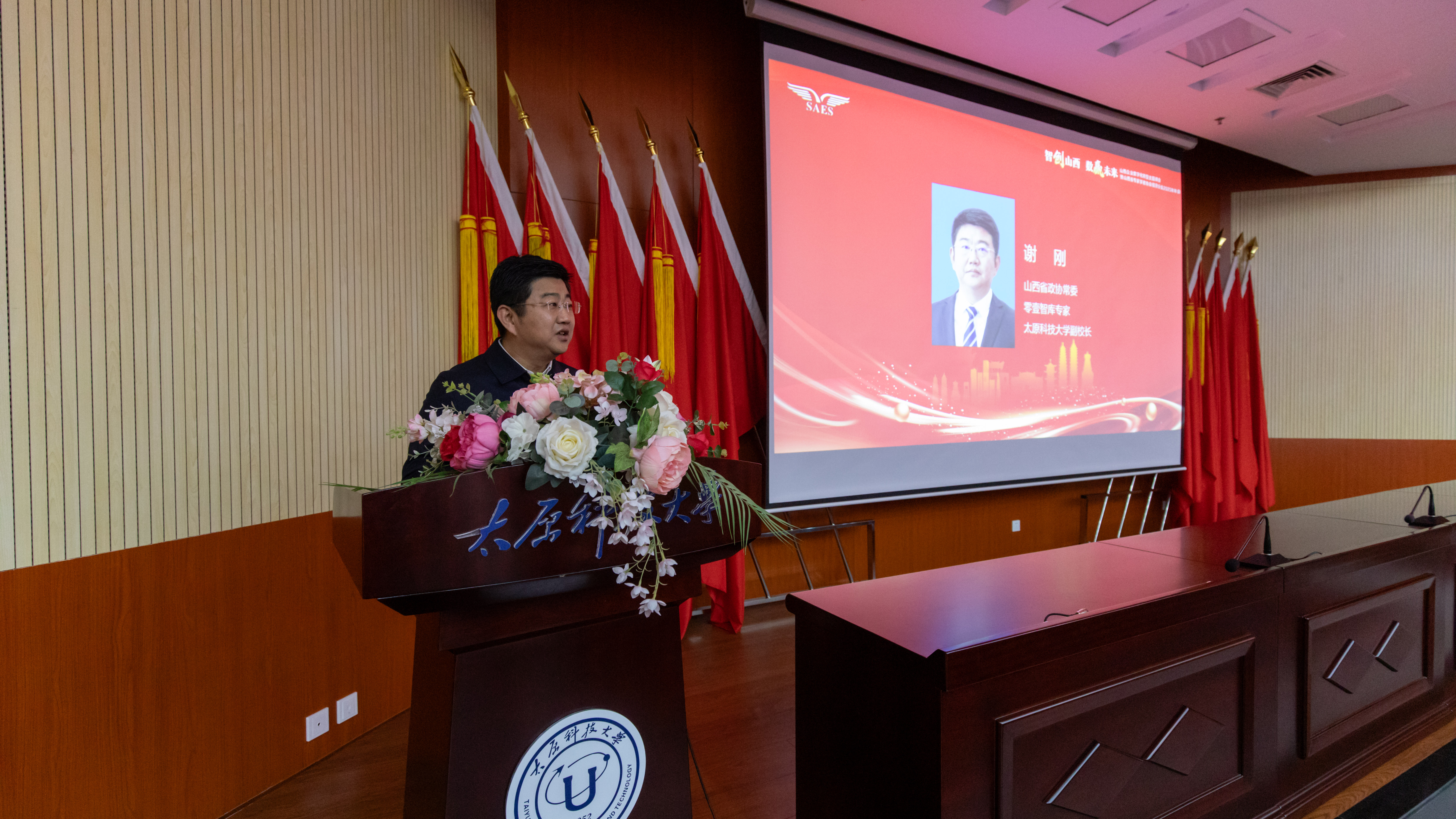 副校长谢刚在致辞中简述了学校在学科建设、人才培养、科学研究、社会服务等方面的发展情况,并对计算机科学与技术学院近年来在成果转化、产教融汇、科教融合方面取得的成果进行了介绍。