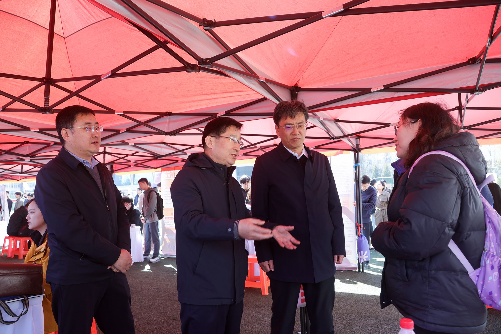 校党委书记白培康,校党委副书记、校长梁卫国来到招聘会现场,实地考察企业用人需求,关切询问毕业生就业意向。各学院党政负责人、毕业班辅导员全员下沉招聘一线,主动对接用人单位,精准推介优秀学子,为供需双方搭建高效沟通桥梁,全力保障招聘工作取得实效。