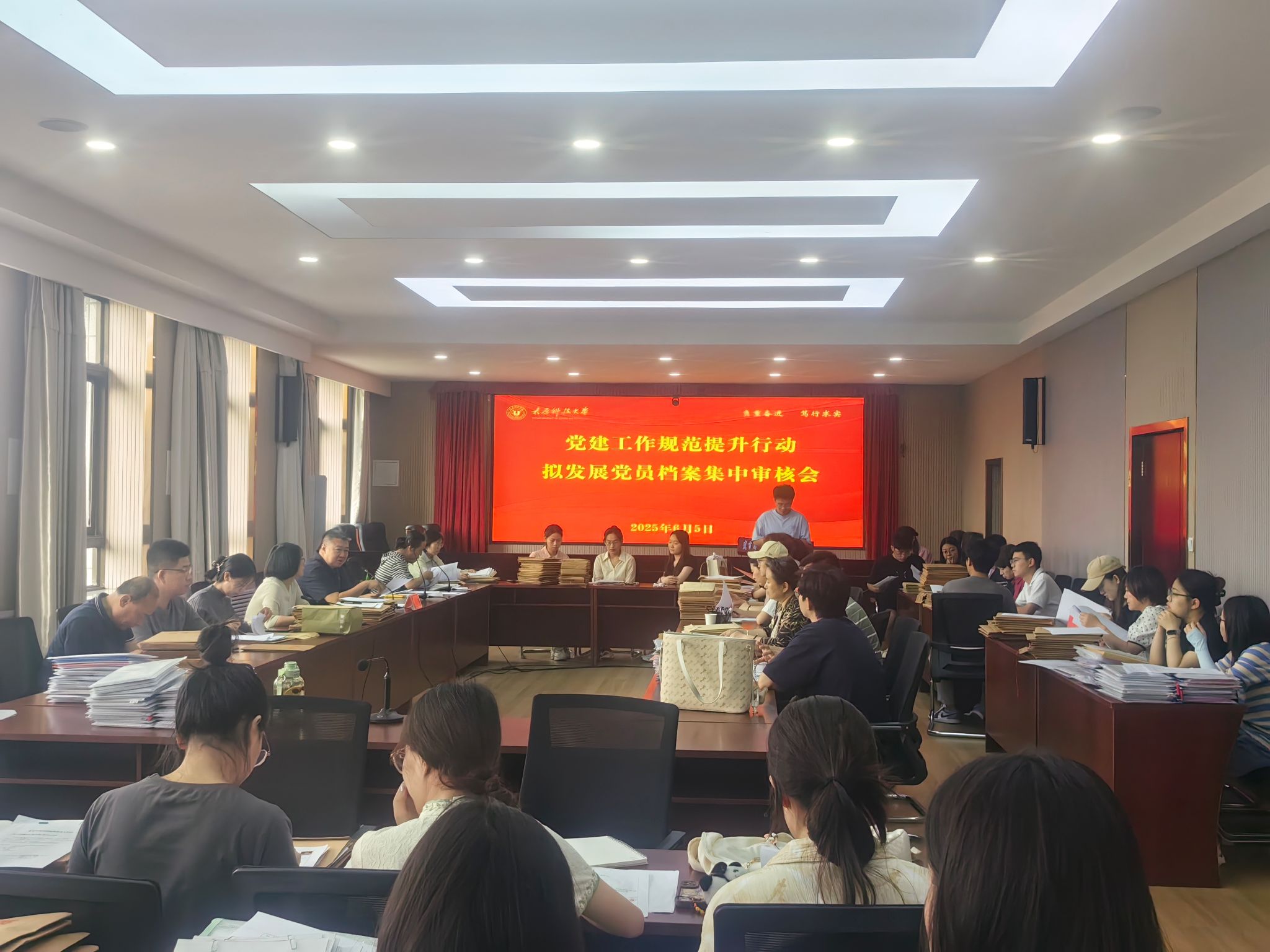 为进一步做好发展党员工作,从严从实把好发展党员各个关口,切实提高发展党员档案管理工作标准化、规范化、制度化水平,6月5日,学校党委组织部开展发展党员档案专项审核工作,对2025上半年740余名发展对象的入党档案材料进行集中审查。本次审查工作按照“审查-抽查-反馈-整改”的方式进行,确保审查工作形成有效闭环。