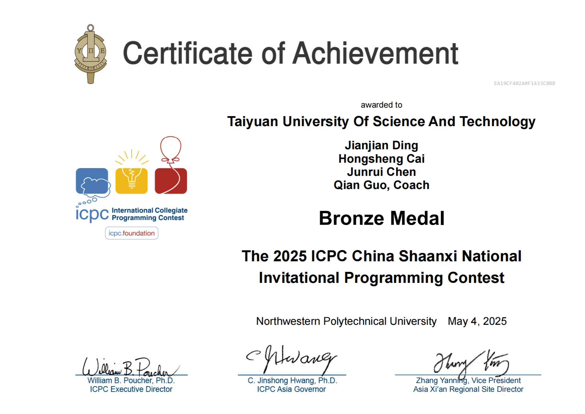 近日,2025年ICPC国际大学生程序设计竞赛全国邀请赛(陕西)成绩揭晓,经过激烈角逐,beat365官网计算机科学与技术学院郭倩老师指导的本科生团队斩获铜奖,这也是目前beat365官网本科生在该赛事中荣获的最高奖项。