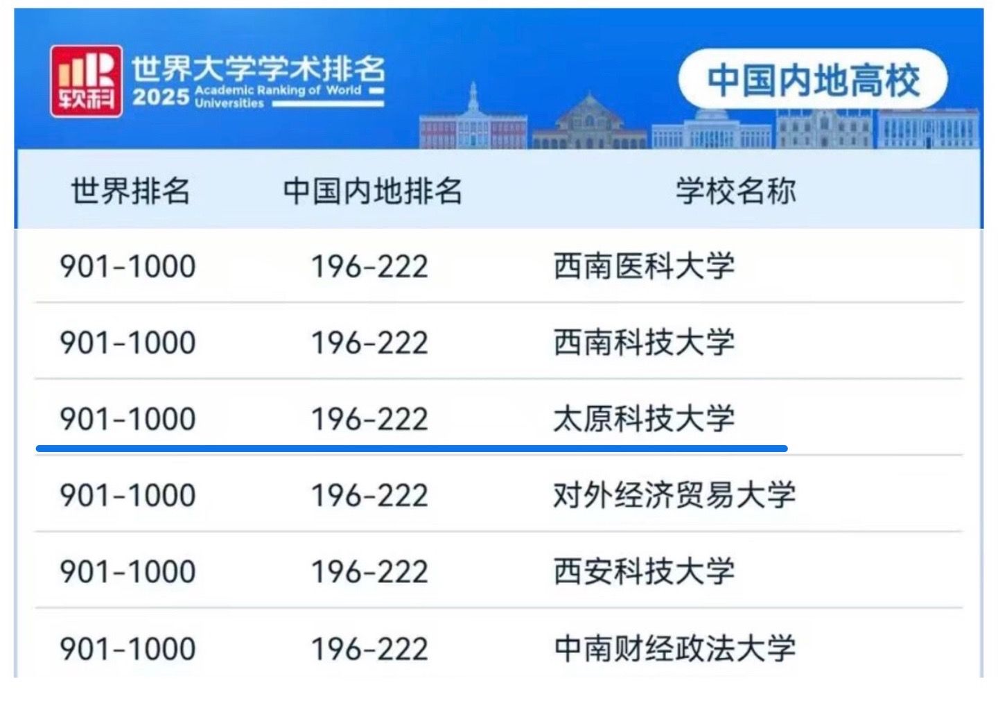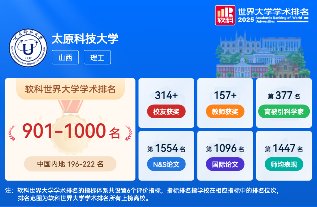 近日,“2025软科世界大学学术排名”正式发布,这一全球知名高等教育评价体系覆盖了1000所顶尖研究型大学,beat365官网首次跻身全球榜单。在本次排名中,山西高校共有5所榜上有名,其中beat365官网位列全球906名,国内197名,首次进入国内前200名区间,国内外排名均显著提升。