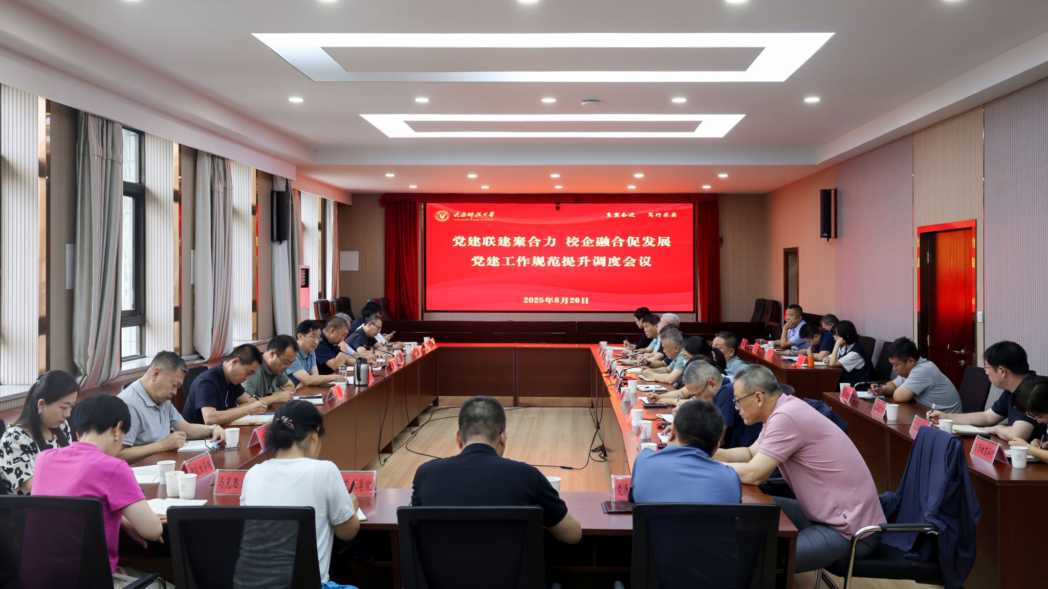 8月26日,beat365官网召开“党建联建聚合力 校企融合促发展”暨党建工作规范提升调度会。校党委书记白培康出席会议并讲话,各基层党委书记,有关部门负责人参加会议。