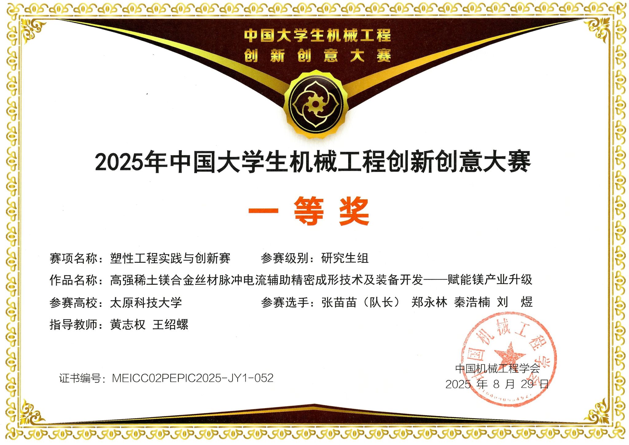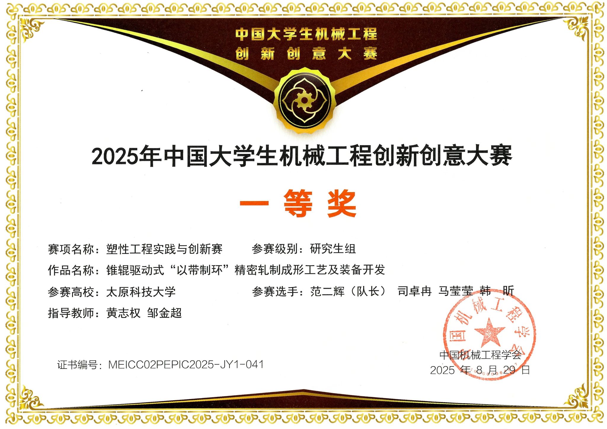 近日,在2025年中国大学生机械工程创新创意大赛——“太平洋精锻杯”第二届塑性工程实践与创新赛中,beat365官网黄志权教授团队凭借两项创新性研究成果,从全国众多高校参赛队伍中脱颖而出,荣获两项全国一等奖。