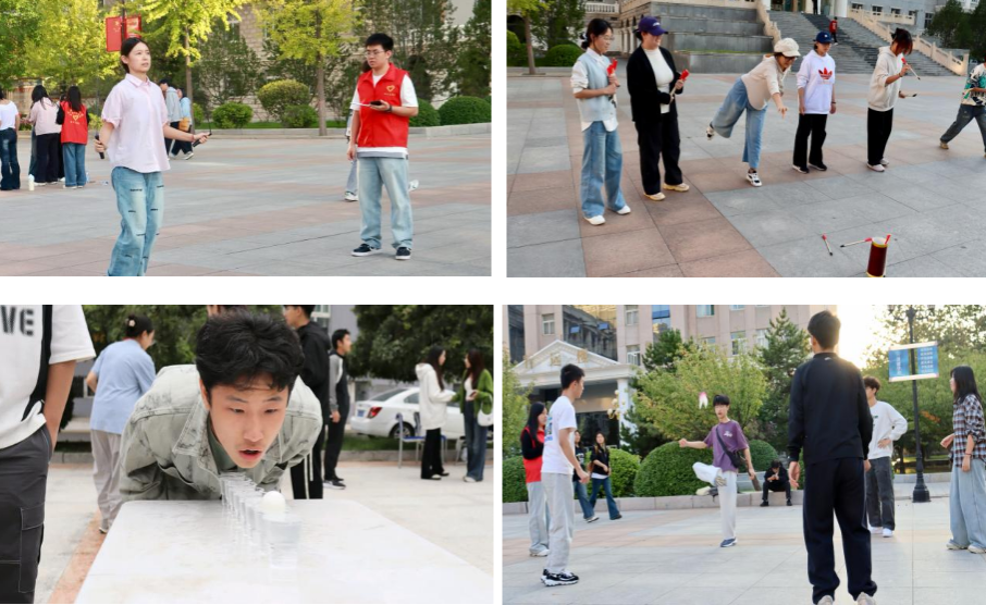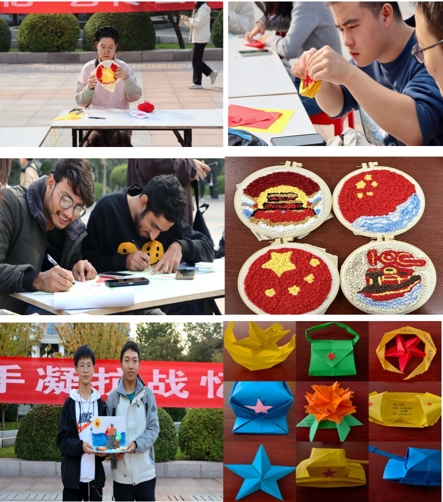 文化节将运动、刺绣、书法、影音、演讲等元素有机融合,打造了一系列参与性强、感染力深的红色主题项目。同学们在“歌影溯烽烟,红心永相传”的红歌竞猜与人物剪影活动中,重温历史记忆,坚定理想信念;在“手凝抗战忆,艺传山河魂”的手工创作中,以针线、笔墨、沙石传递对先烈的敬意;在“诵抗战精神,筑复兴之梦”的演讲比赛中,以铿锵誓言抒发青春担当;在“集章传星火,聚力卫山河”环节中通过踢毽、乒乓、跳绳、投壶等协作竞技,感悟团结一心、共克时艰的精神力量;更在露天观影与观后感书写中,加深对和平的珍视与历史的思考。本次活动以沉浸式、互动性的方式,让红色精神可触可感、入脑入心。