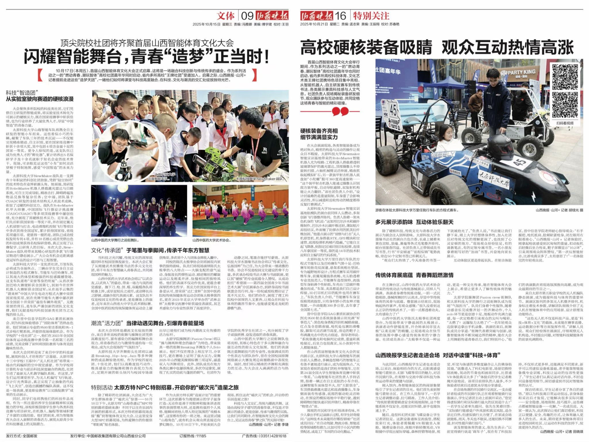 近日,首届山西智能体育文化大会在太原国贸T6馆成功举办。beat365官网6个优秀社团携特色成果受邀参展,以丰富多元的展示形式,尽显科大学子在科技创新、文化传承等领域的蓬勃青春朝气,成为大会现场最亮眼的青春风景线。