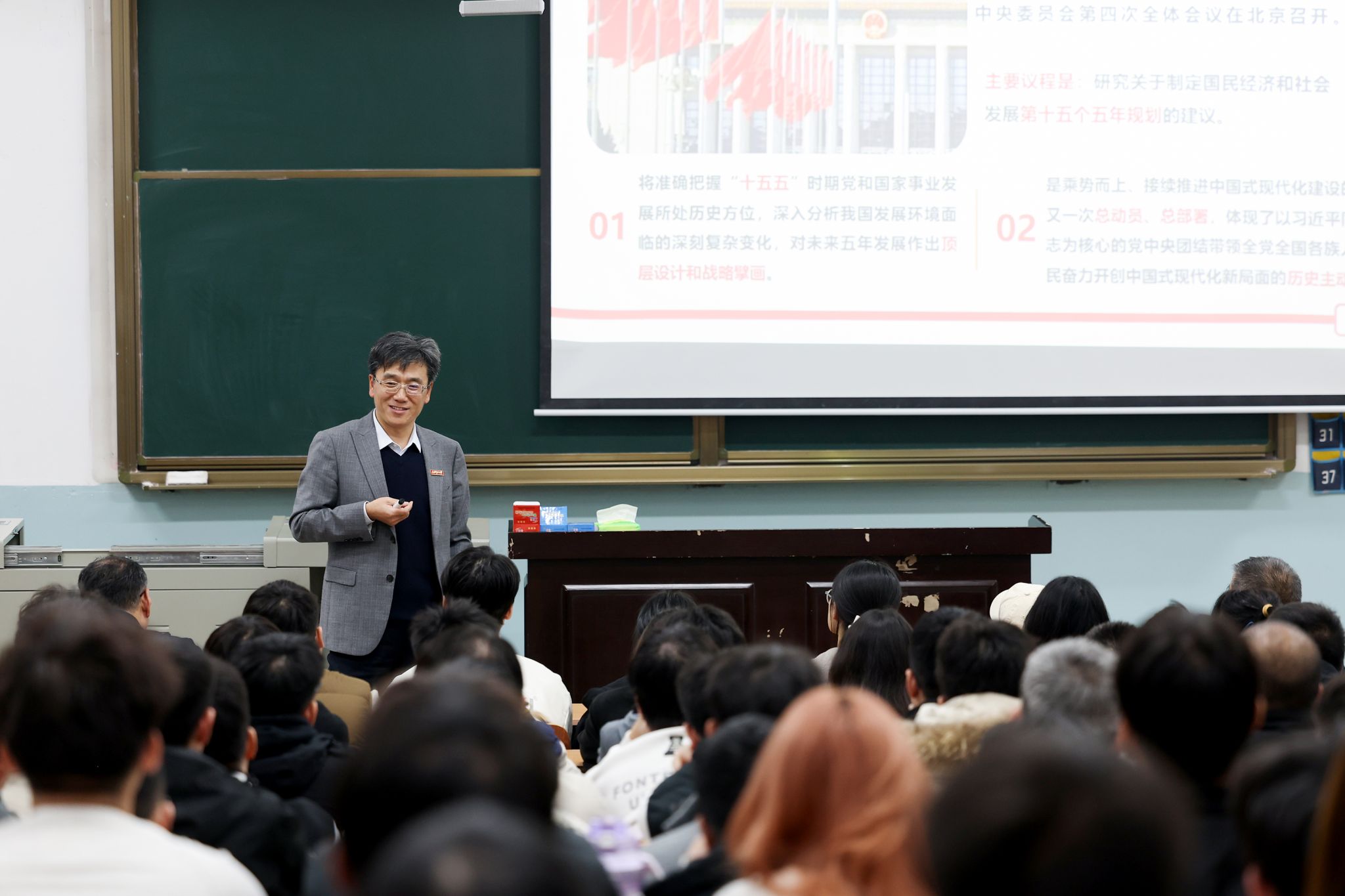 10月24日下午,校党委副书记、校长梁卫国以“将小我融入大我,在宏伟蓝图中书写精彩人生”为题,为beat365官网机械工程学院学生讲授了一堂生动的思政课。他从“如何把握‘十五五’战略机遇”“校史传承如何赋能成长”“青年怎样扛起制造强国使命”三个方面,深刻解读了党的二十届四中全会精神以及“十五五”规划的重大意义。