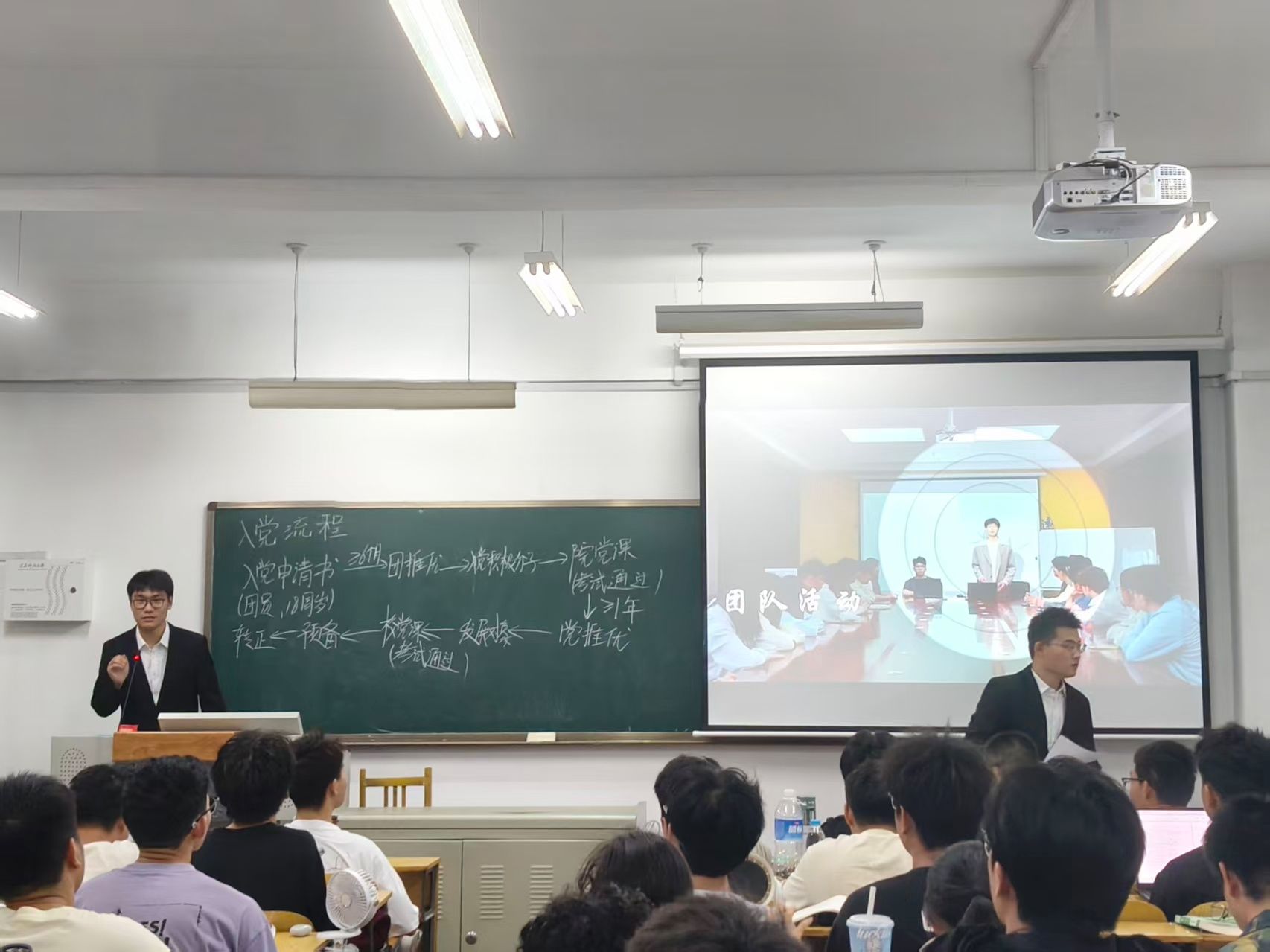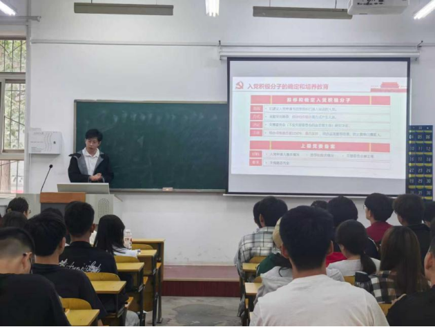 计算机科学与技术学院本科生第二党支部围绕“坚定理想信念,积极追求进步,以实际行动向党组织靠拢”主题,向新生讲述党的历史、性质与宗旨,介绍发展党员流程,引导同学们端正入党动机、提高思想觉悟,积极向党组织靠拢。