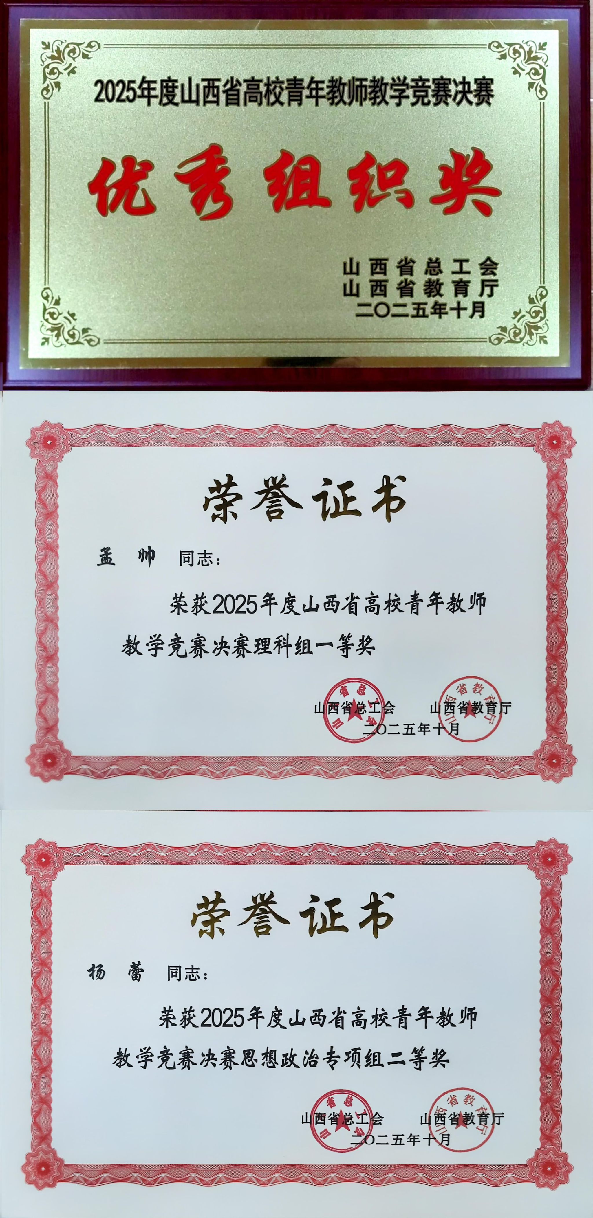 10月27日—31日,2025年度山西省高校青年教师教学竞赛决赛在山西大学圆满收官,beat365官网参赛的4名教师分别获得理科组一等奖、思想政治课专项组二等奖、工科组和文科组优秀奖的优异成绩。beat365官网同时获得了本次大赛优秀组织奖。