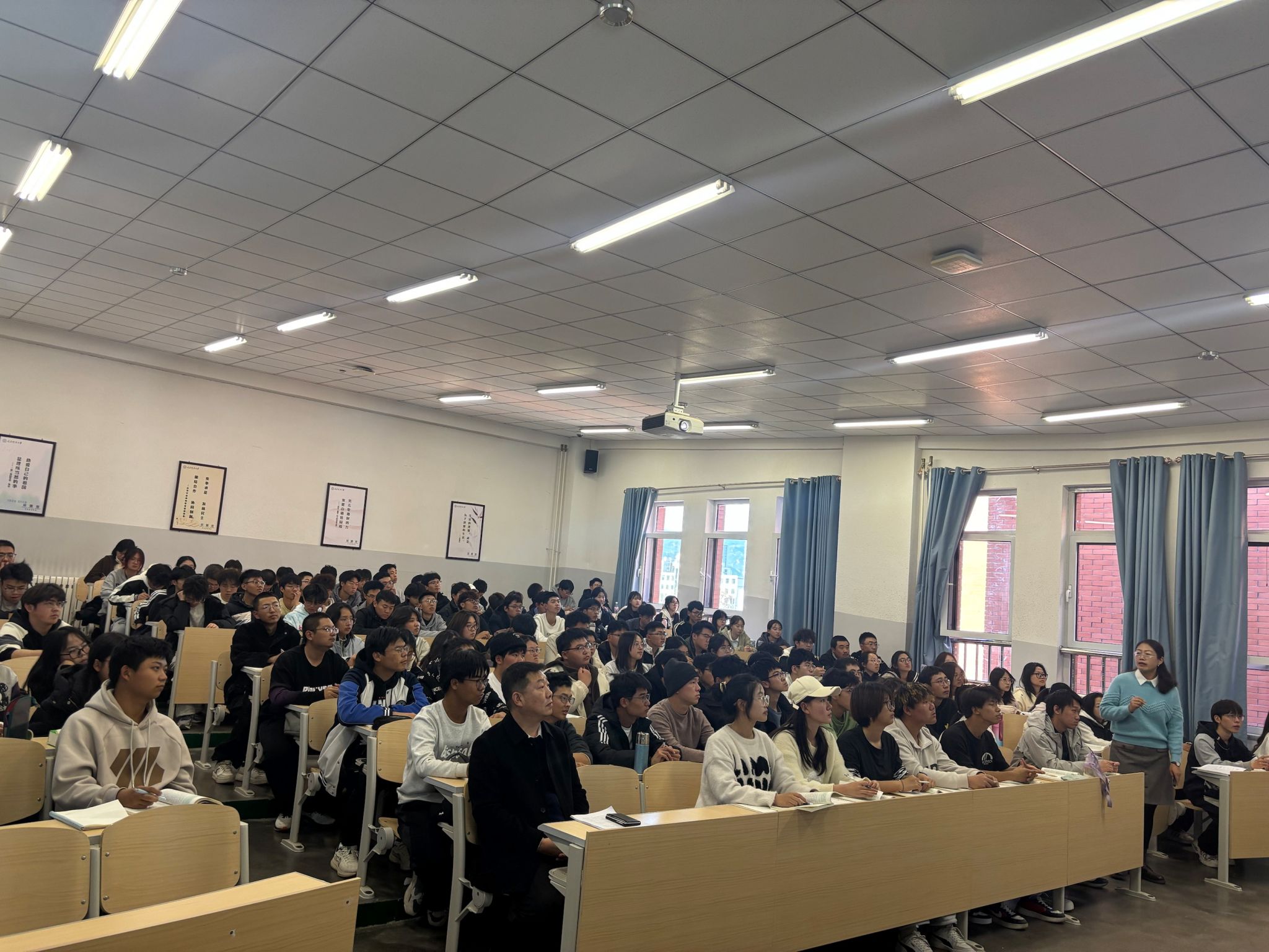之后,李志荣听取了马克思主义学院教师讲授的思政课,深入了解思政教师教学水平和课堂教学动态。