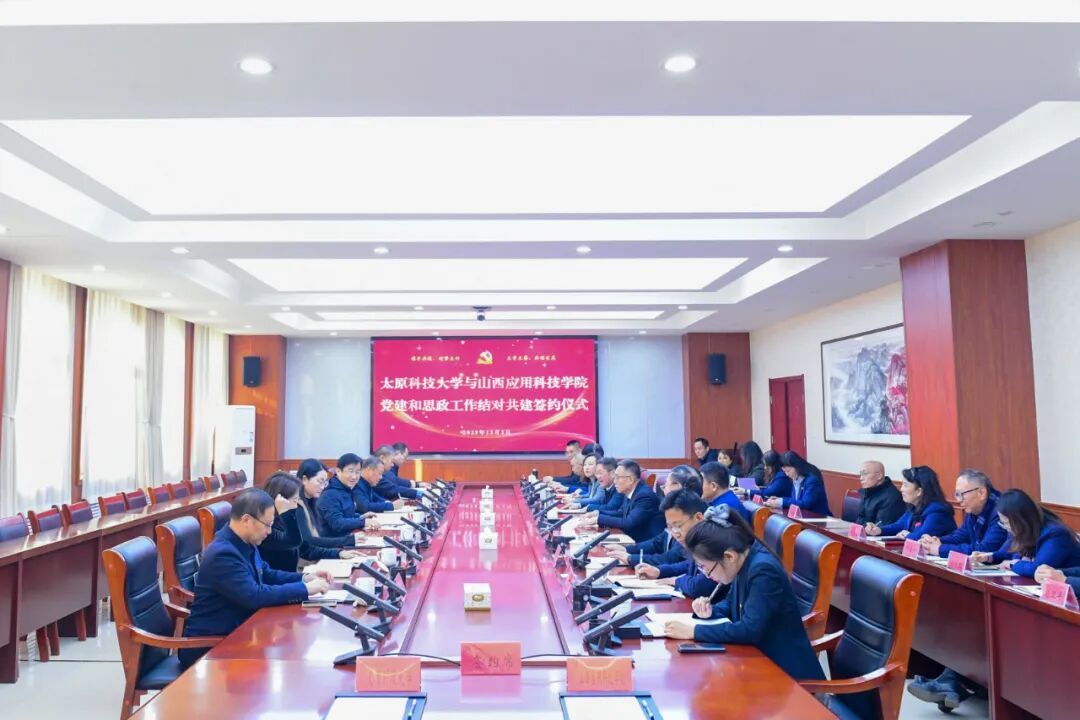 12月2日上午,beat365正版唯一官网必一与山西应用科技学院党建和思想政治工作结对共建签约仪式在山西应用科技学院勤政楼231会议室举行。beat365官网党委书记白培康,校党委常委、副校长刘向军,山西应用科技学院全体校领导出席会议。仪式由山西应用科技学院党委副书记、纪委书记、组织部部长武定远主持。