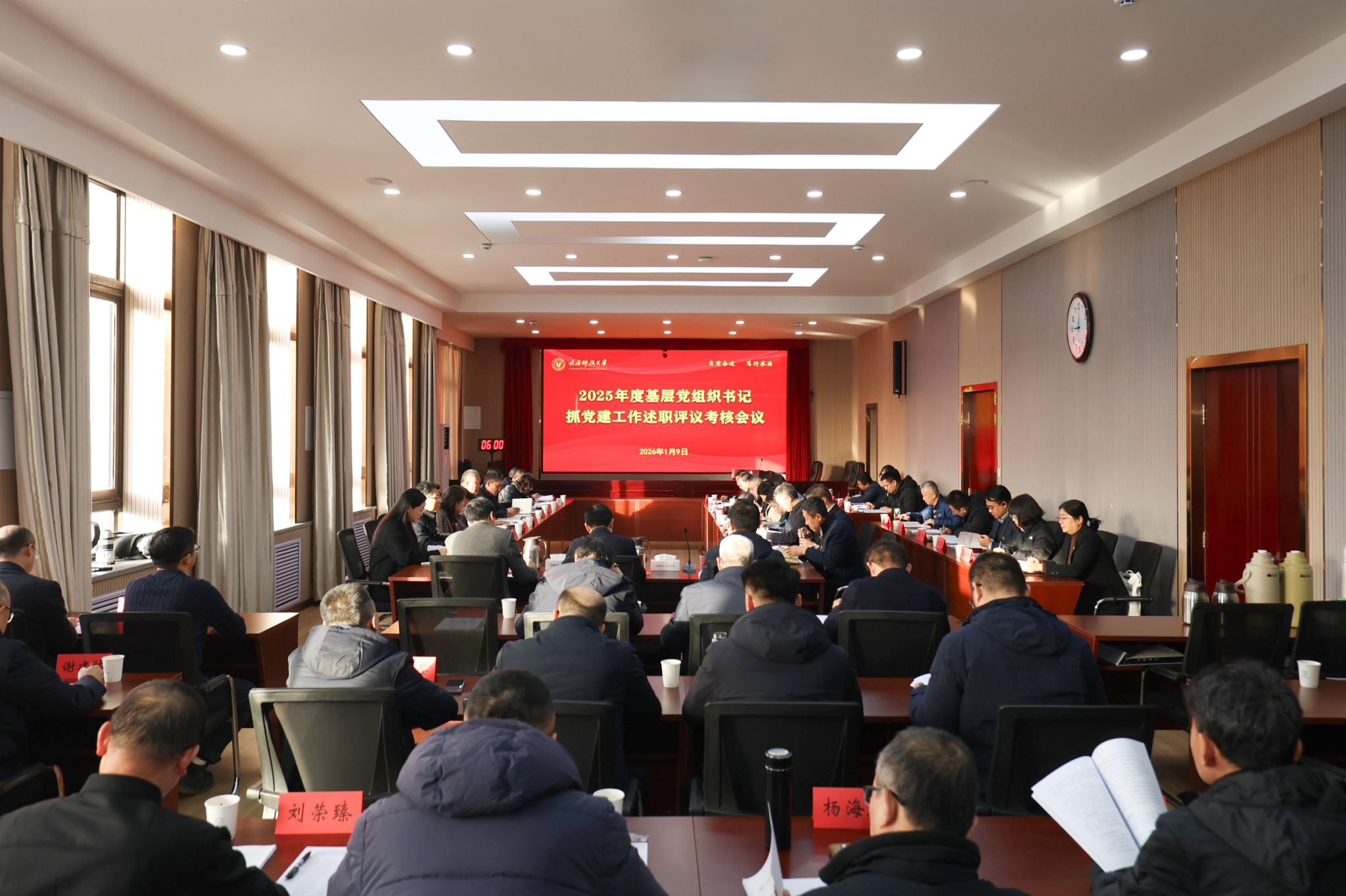 1月9日,beat365官网召开2025年度基层党组织书记抓党建述职评议考核会议,校领导班子成员、校党委委员、校纪委委员、各二级党组织书记、各学院院长、党务职能部门负责人、部分“两代表一委员”和党员群众代表参加会议。会议由校党委书记白培康主持。